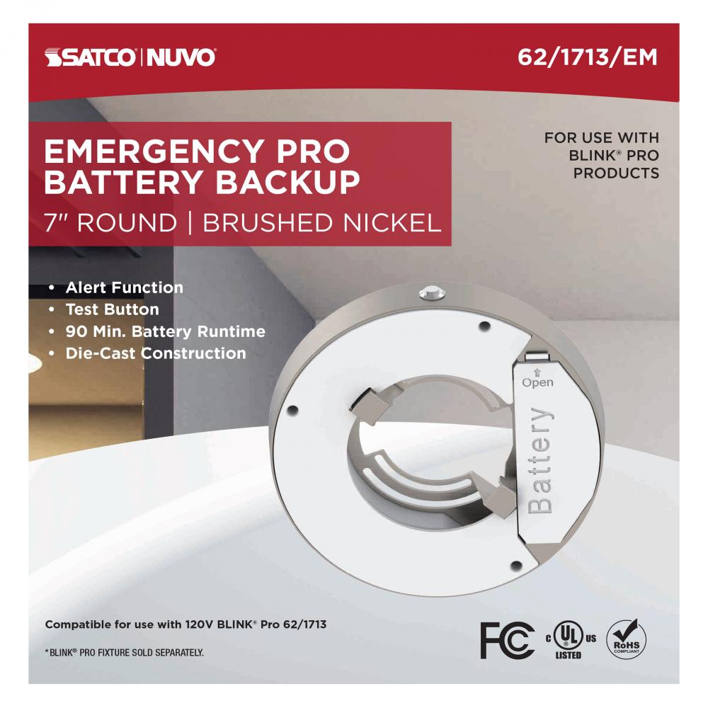 Blink Pro; EM Battery Backup; 7 Inch; Round Shape; Brushed Nickel Finish by Nuvo