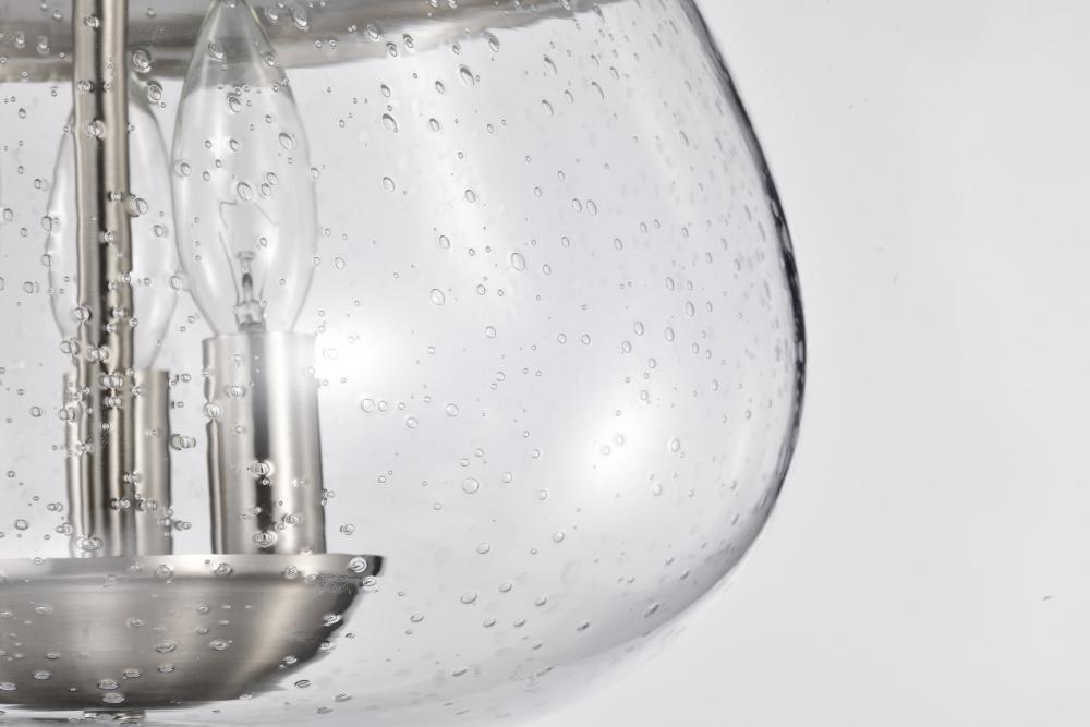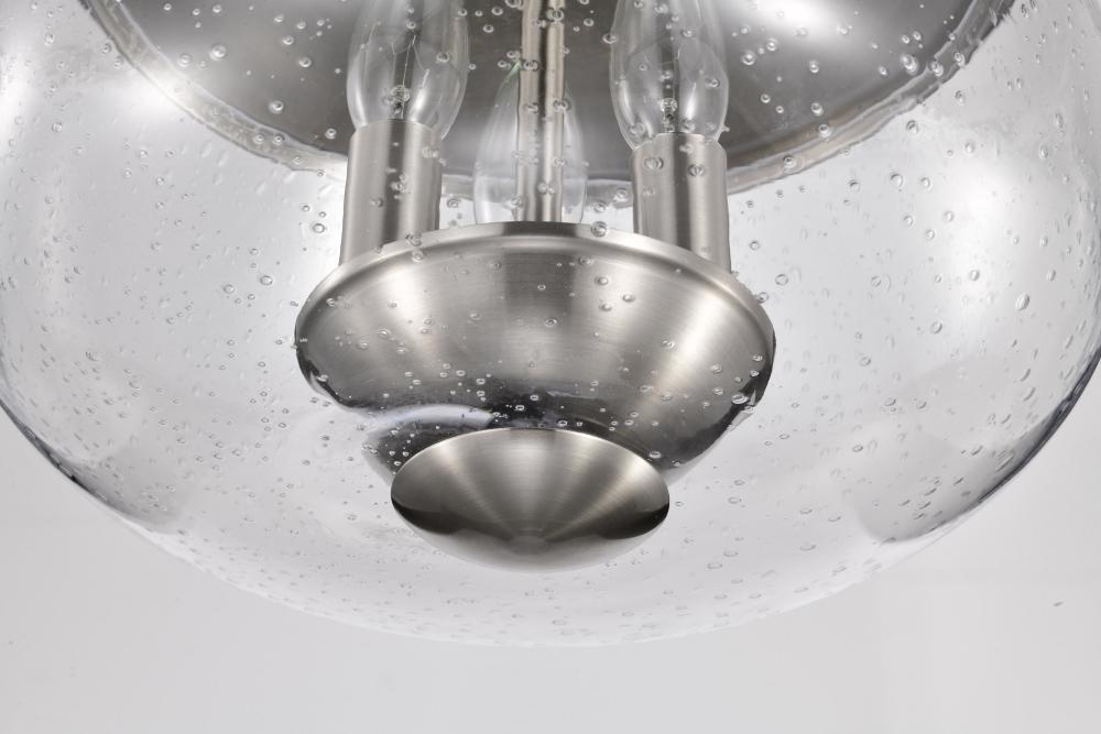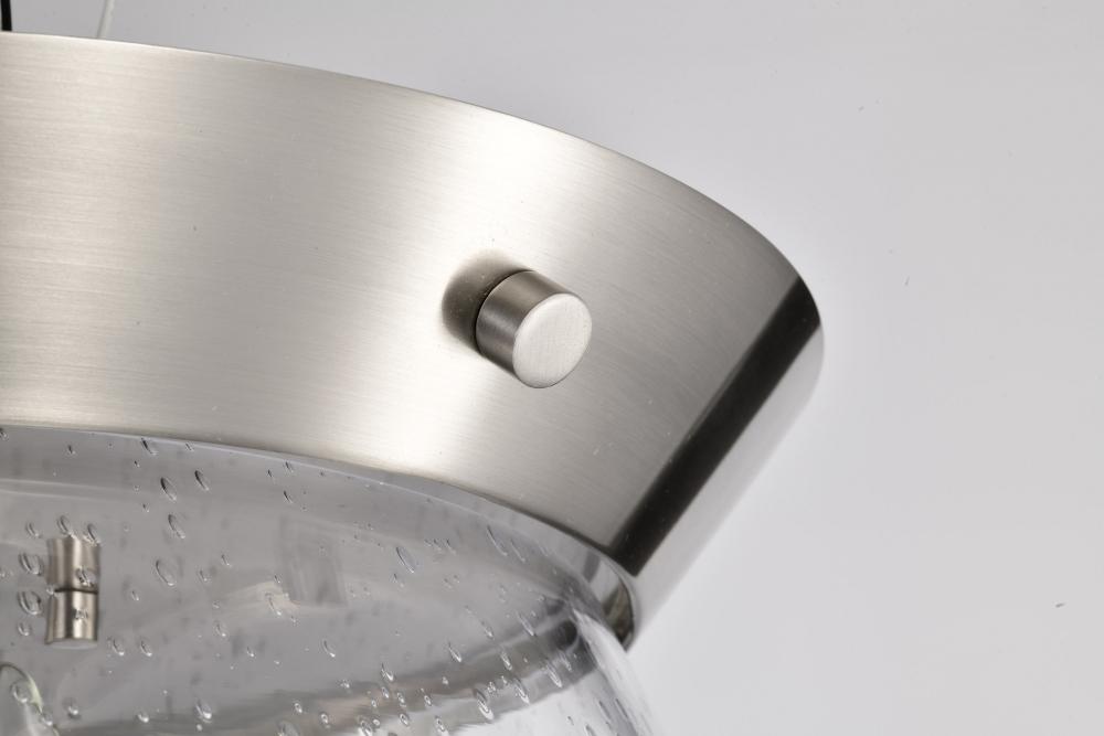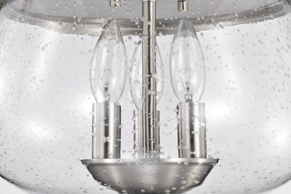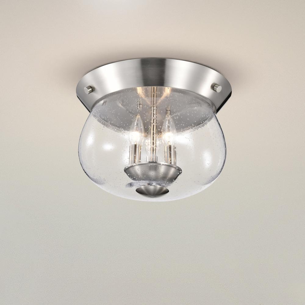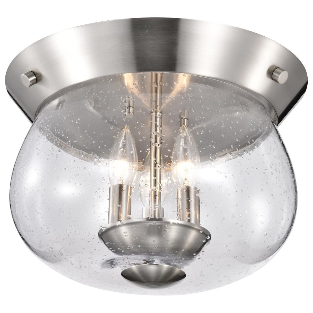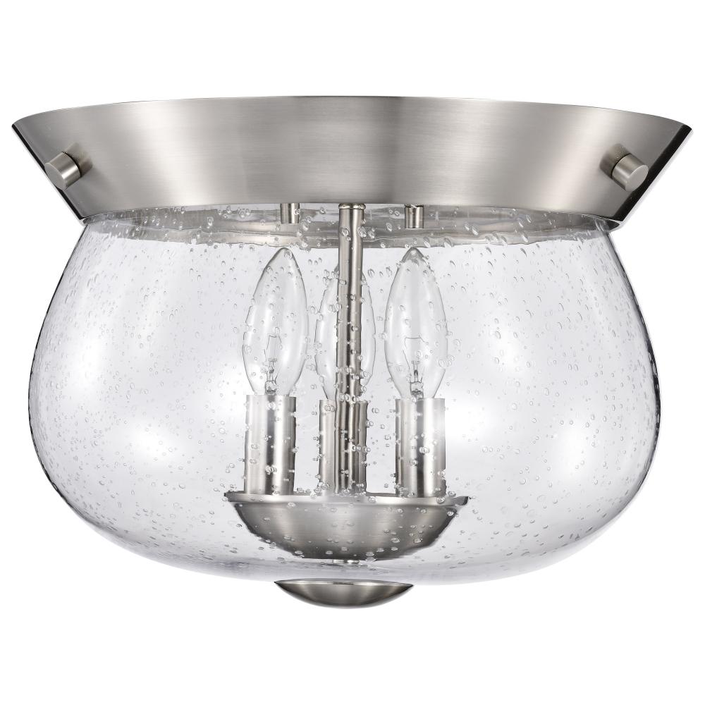 Boliver 3 Light Flush Mount; Brushed Nickel Finish; Clear Seeded Glass