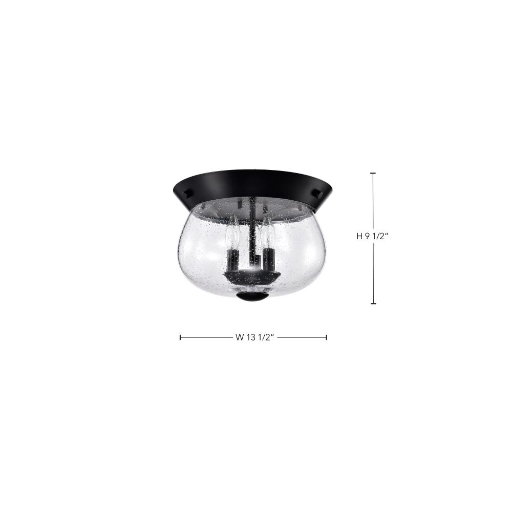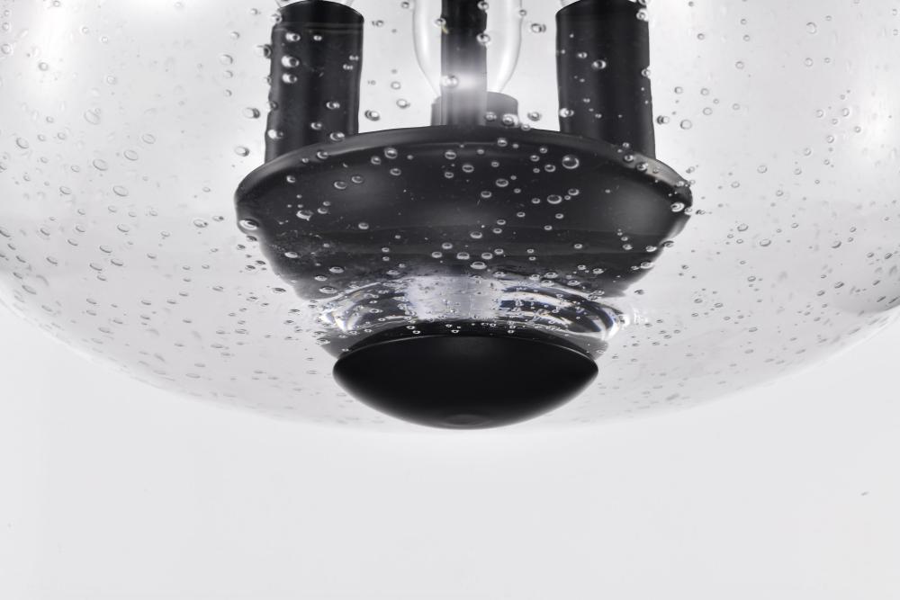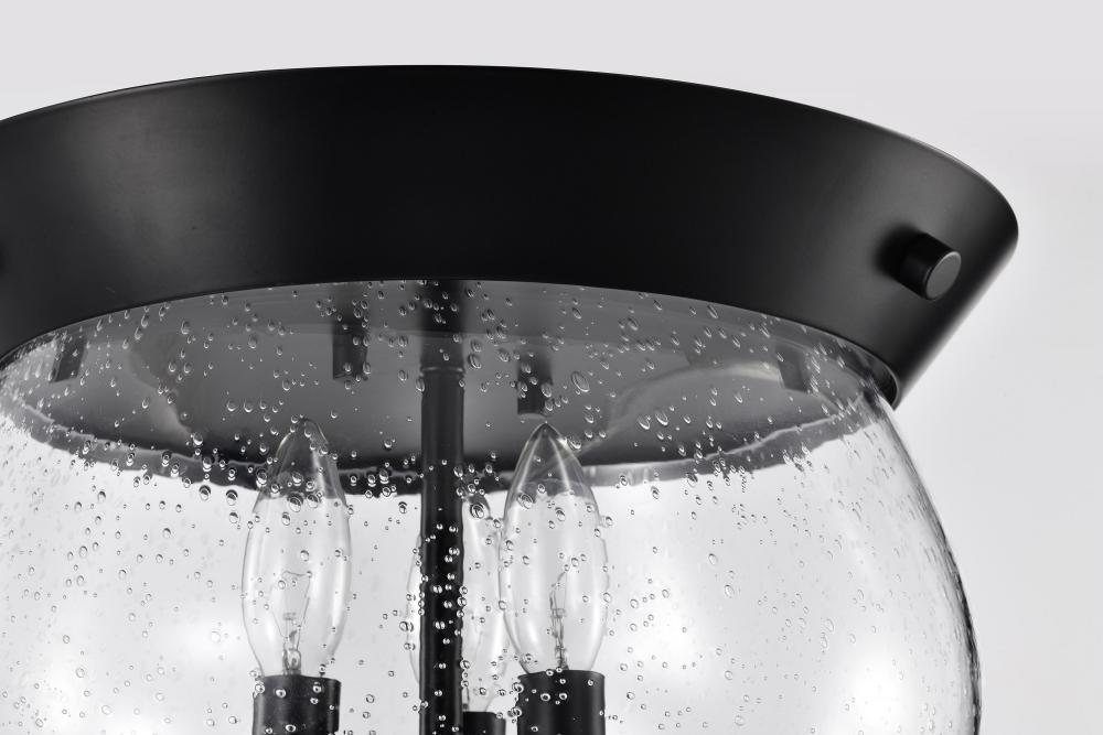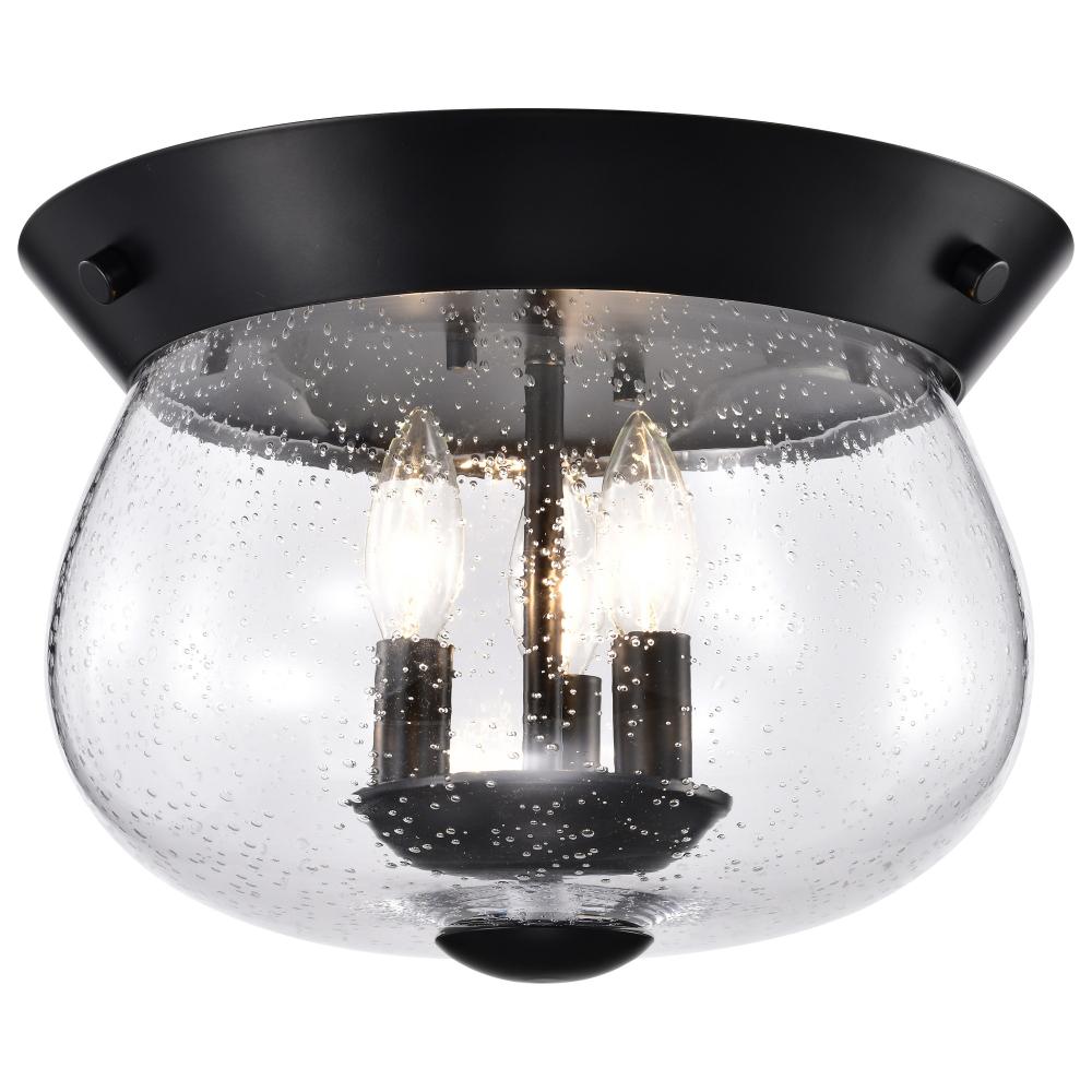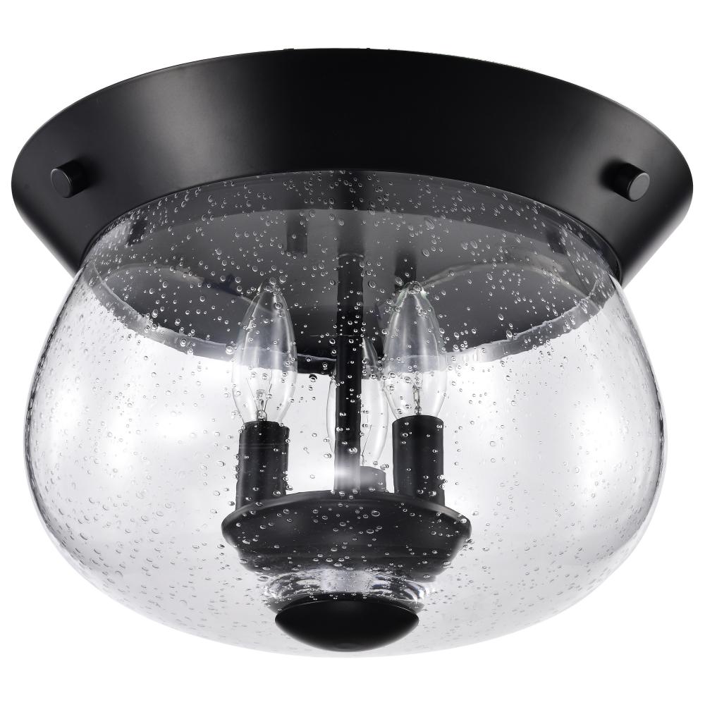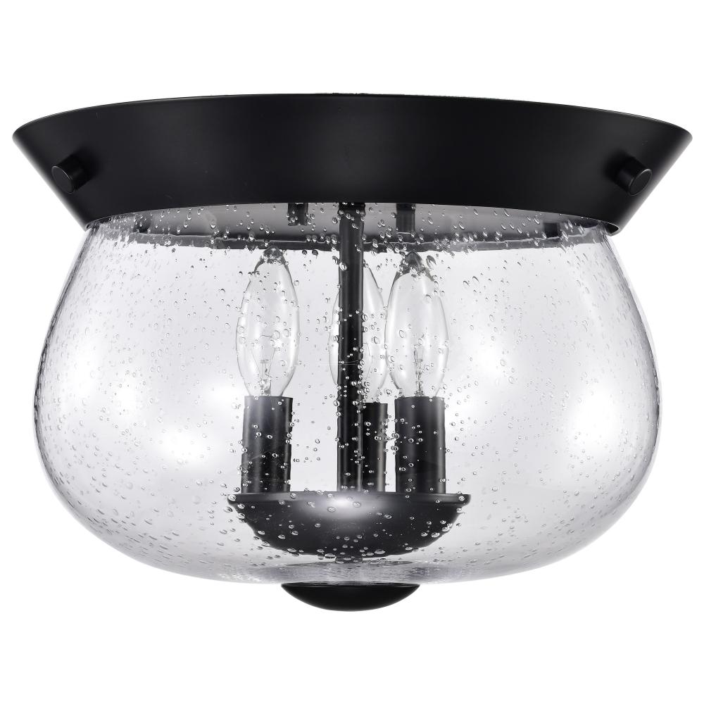 Boliver 3 Light Flush Mount; Matte Black Finish; Clear Seeded Glass