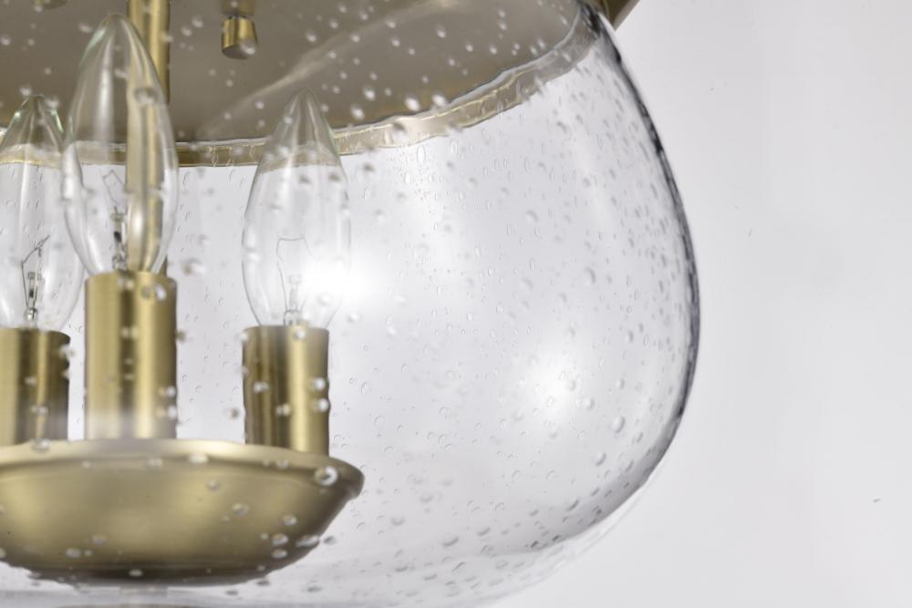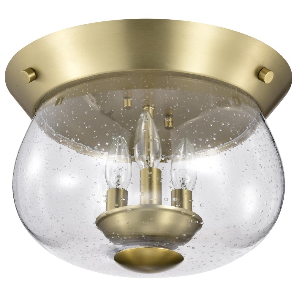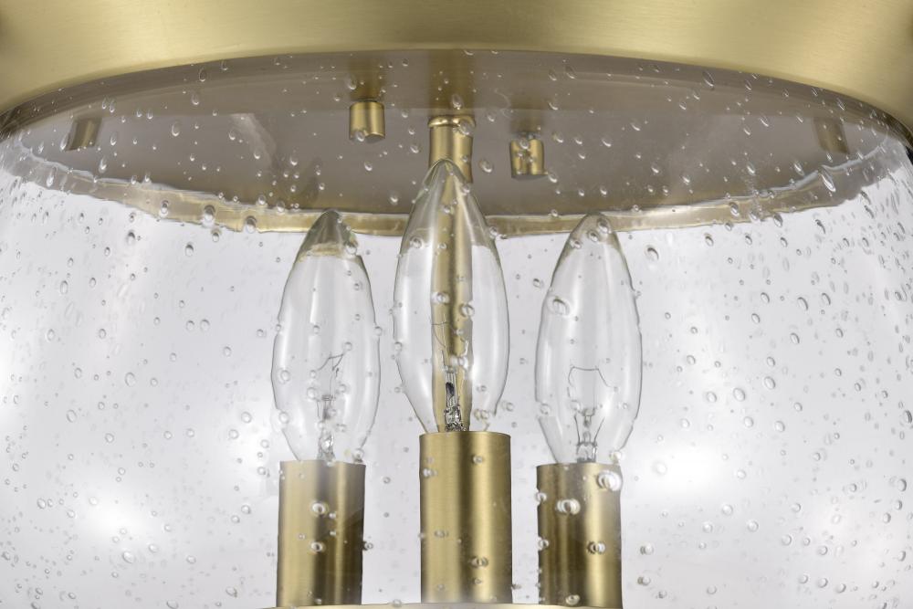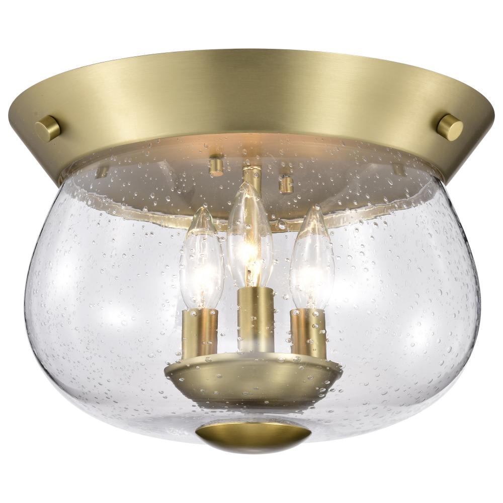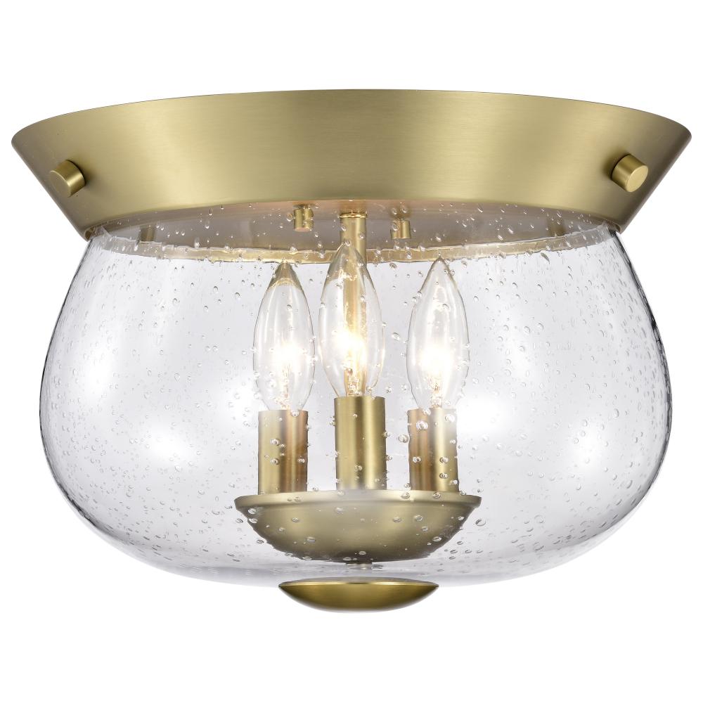 Boliver 3 Light Flush Mount; Vintage Brass Finish; Clear Seeded Glass