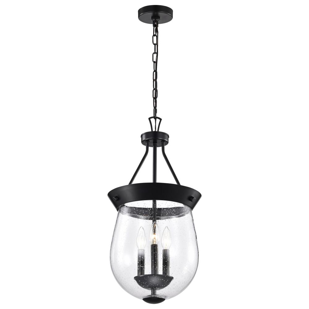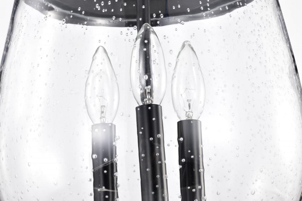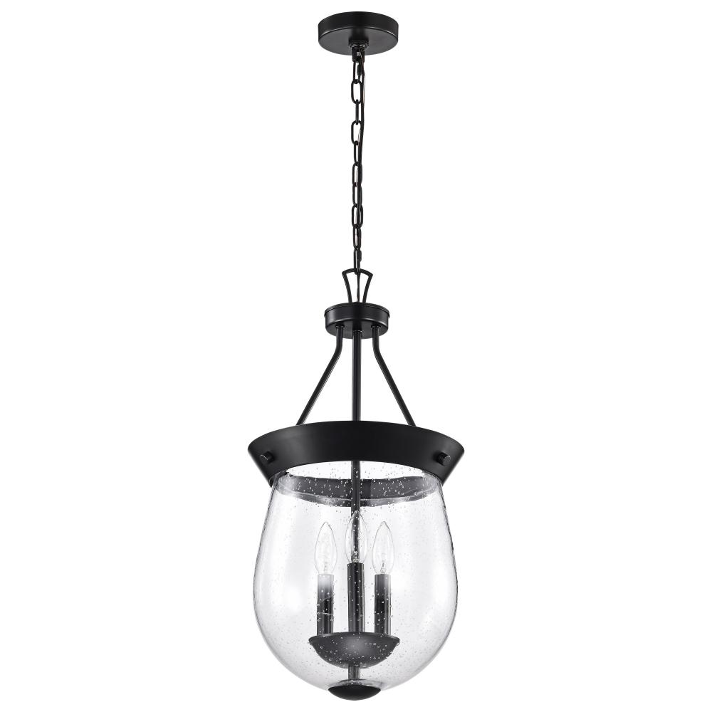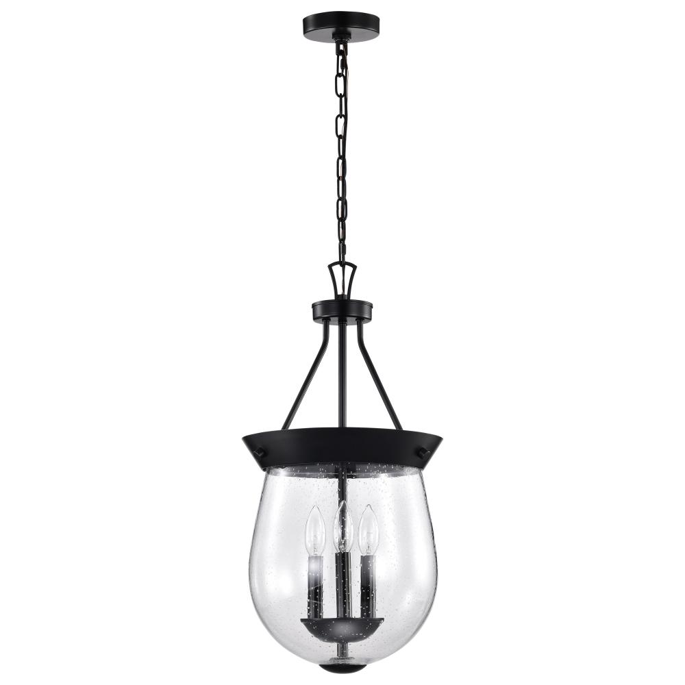 Boliver 3 Light Pendant; 11 Inches; Matte Black Finish; Clear Seeded Glass