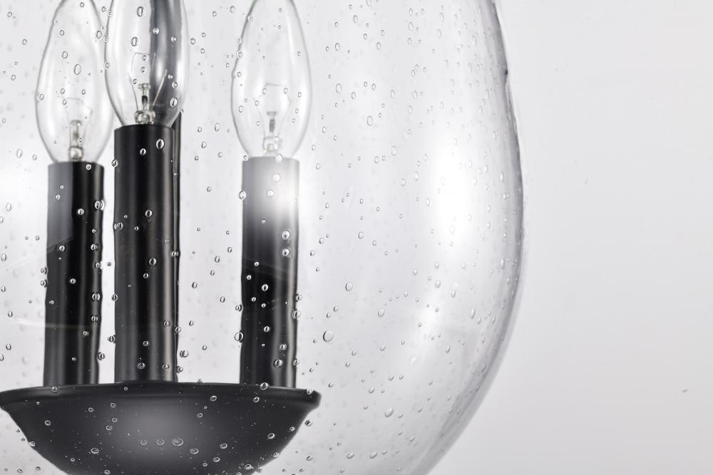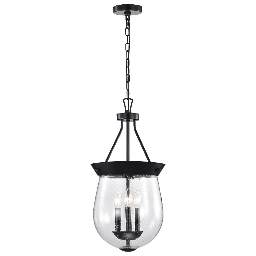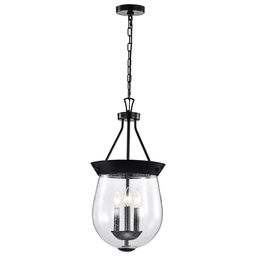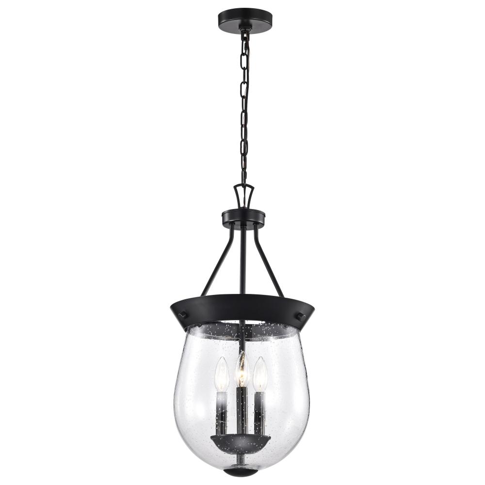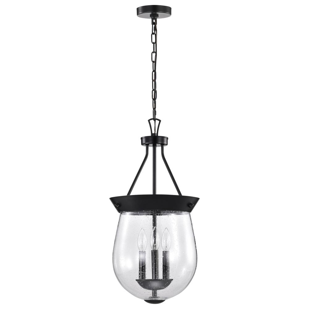 Boliver 3 Light Pendant; 11 Inches; Matte Black Finish; Clear Seeded Glass
