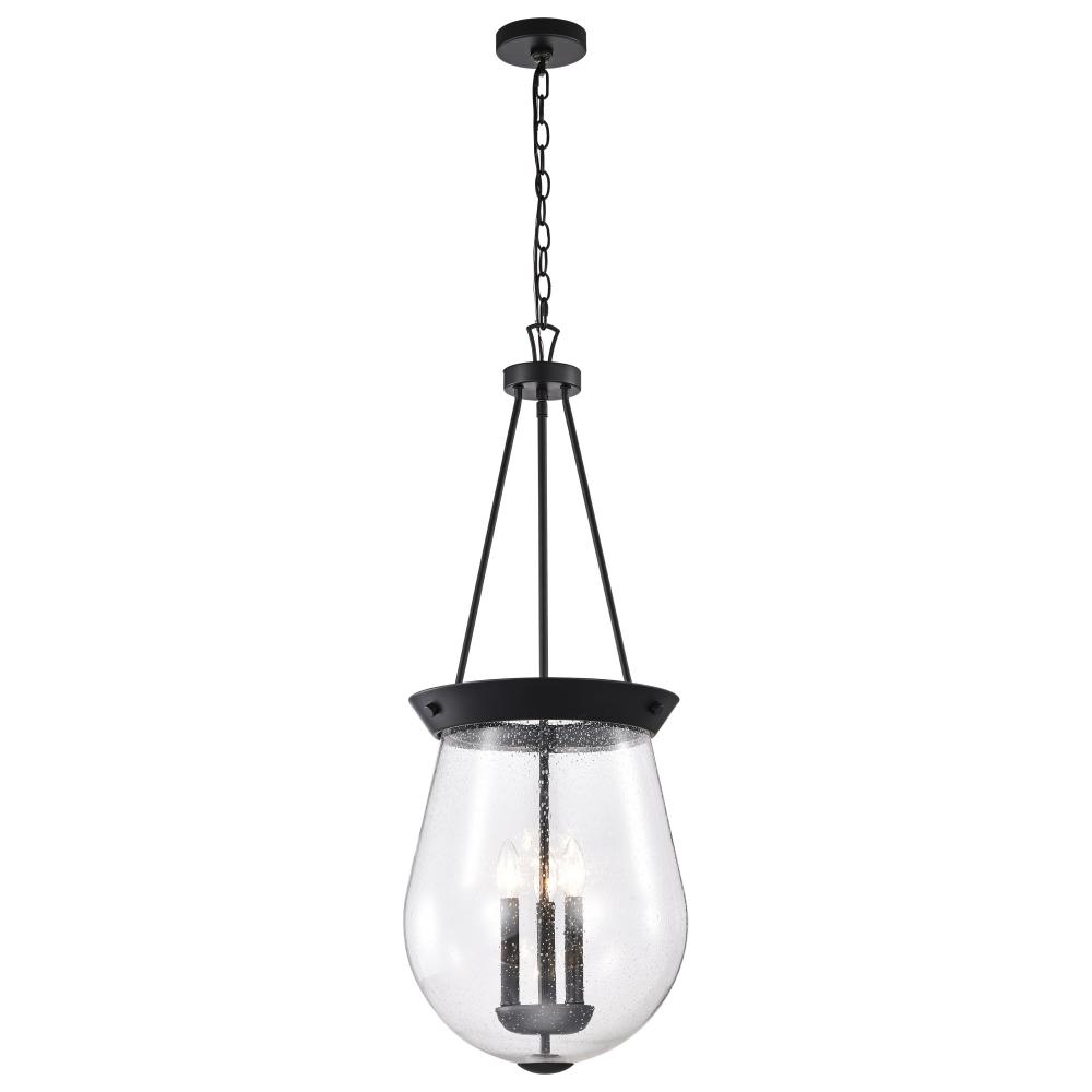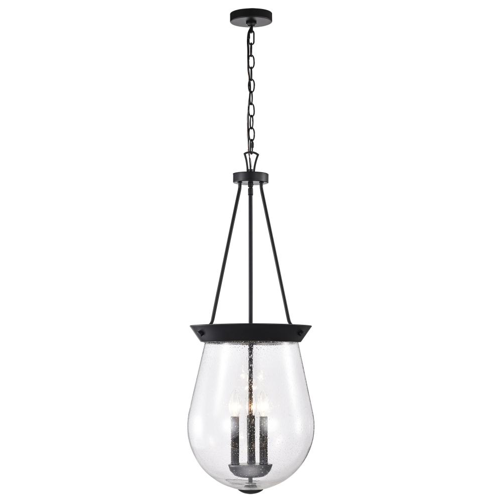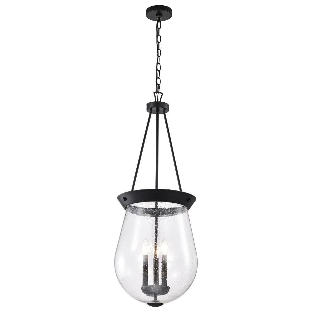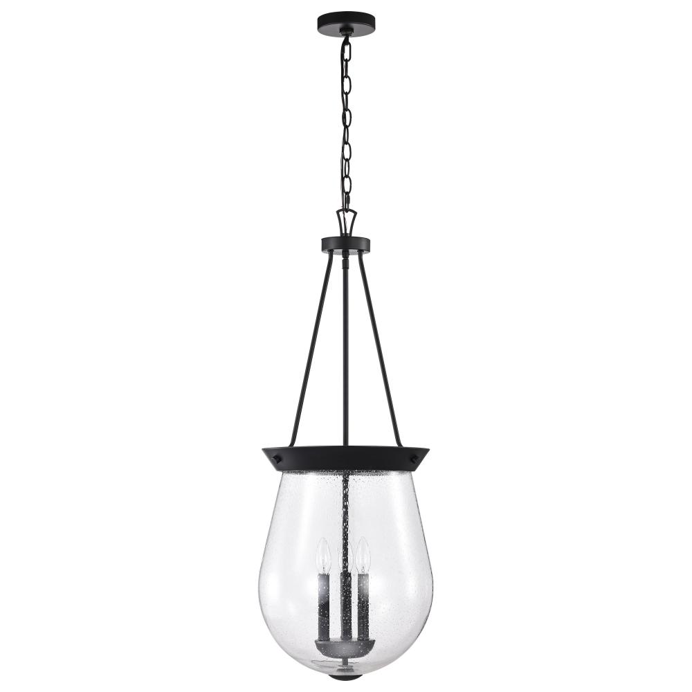 Boliver 3 Light Pendant; 14 Inches; Matte Black Finish; Clear Seeded Glass