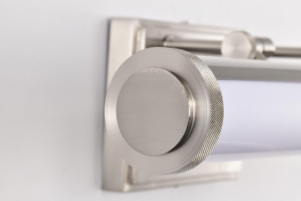 Unveil the beauty of modern design with the Cora 62-2366 LED vanity light, where every detail is crafted to perfection. Featuring elegant, knurled end knobs and a sleek, curved opaque acrylic lens, this LED bath vanity blends sophistication with innovative