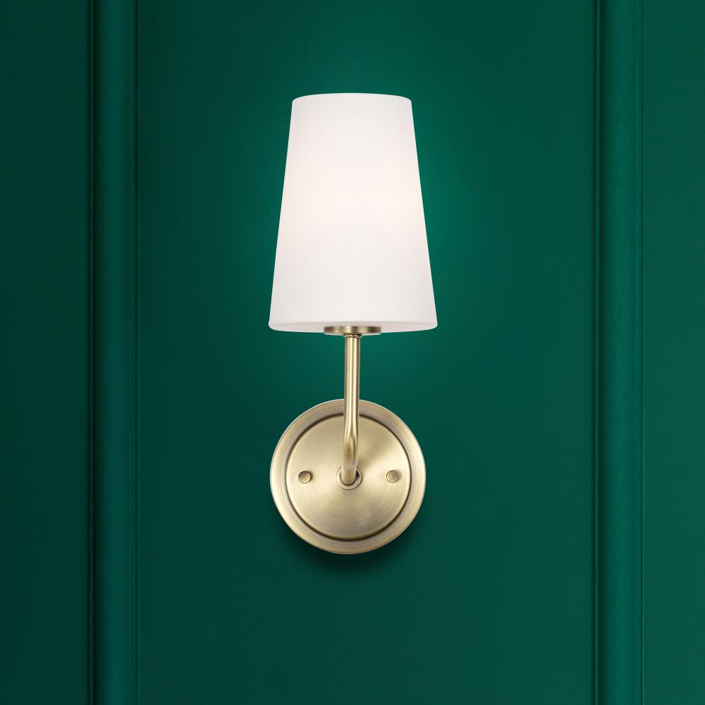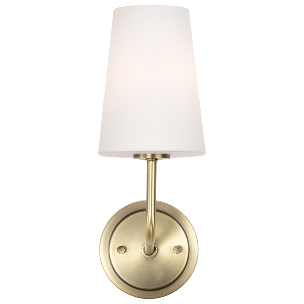 Cordello 1 Light Sconce; Vintage Brass Finish; Etched White Opal Glass