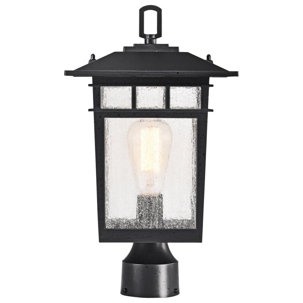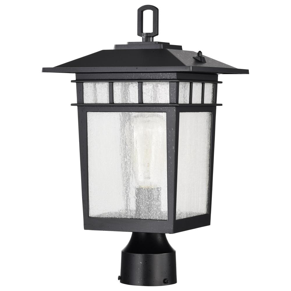 Cove Neck Collection Outdoor Large 16 inch Post Light Pole Lantern; Textured Black Finish with Clear Seeded Glass