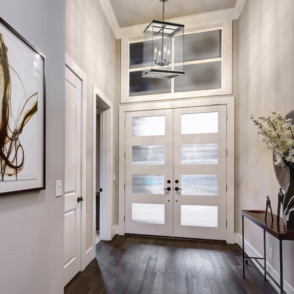 A combination of glass and metal comes together to create the stunning design of the Crossroad 60-7659 foyer pendant. The square, clear glass panels showcase the bulbs. The sockets and base are finished in brushed nickel to contrast beautifully with the ma