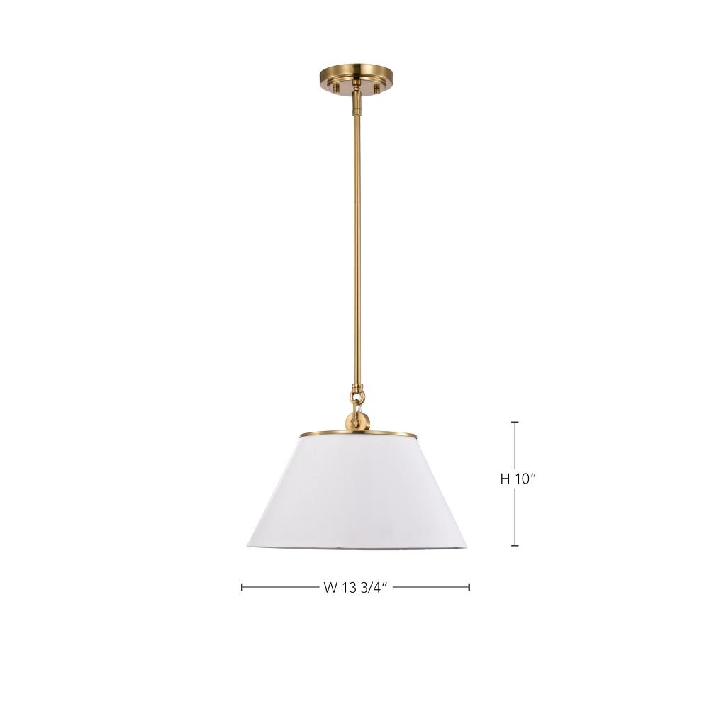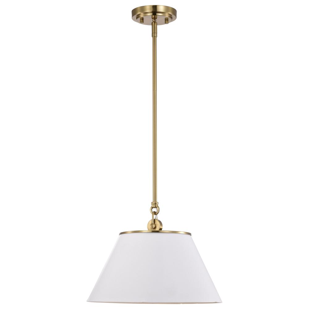 Dover; 1 Light; Medium Pendant; White with Vintage Brass