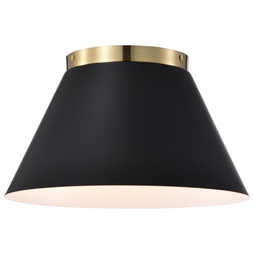 Dover; 3 Light; Small Flush Mount; Black with Vintage Brass