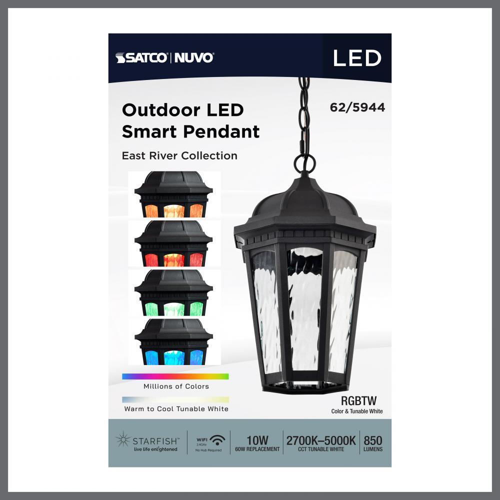 East River Collection; 1 Light Outdoor Hanging Fixture; LED; SMART - Starfish RGBTW; CCT Selectable; by Nuvo