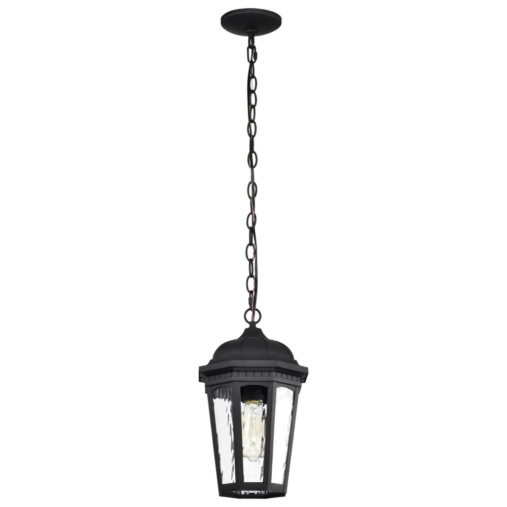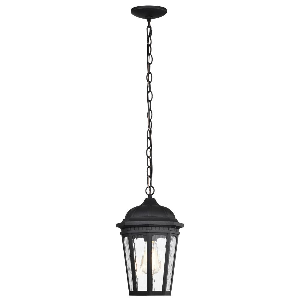 East River Collection Outdoor 14.5 inch Hanging Light; Matte Black Finish with Clear Water Glass