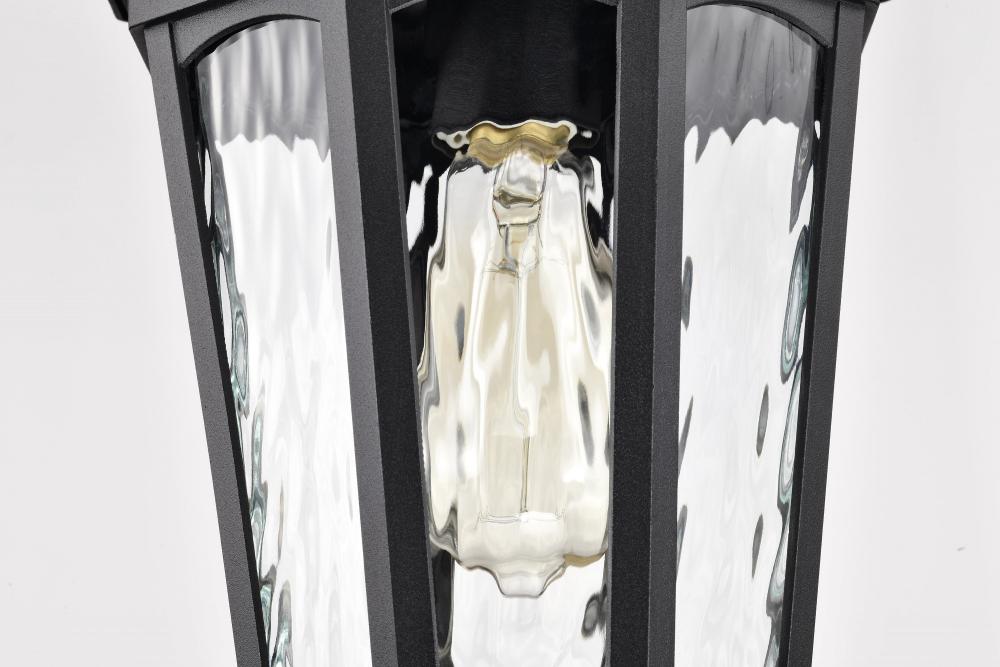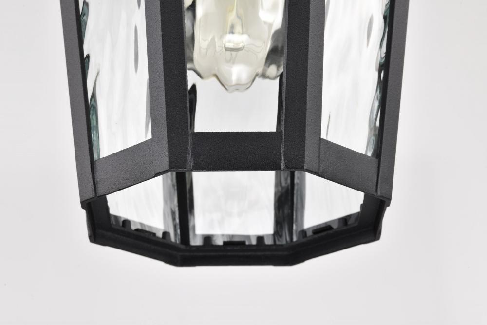With a hint of provincial design, the East River Outdoor Collection features old-world charm combined with today's style. The rippling, clear water glass dances in the light, and is encased in a beautifully designed fixture with a matte black finish hi