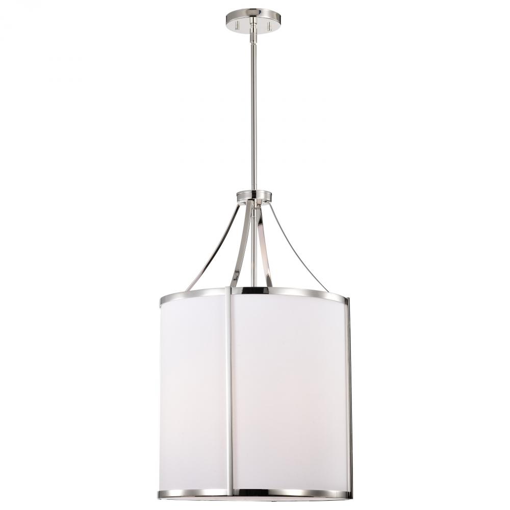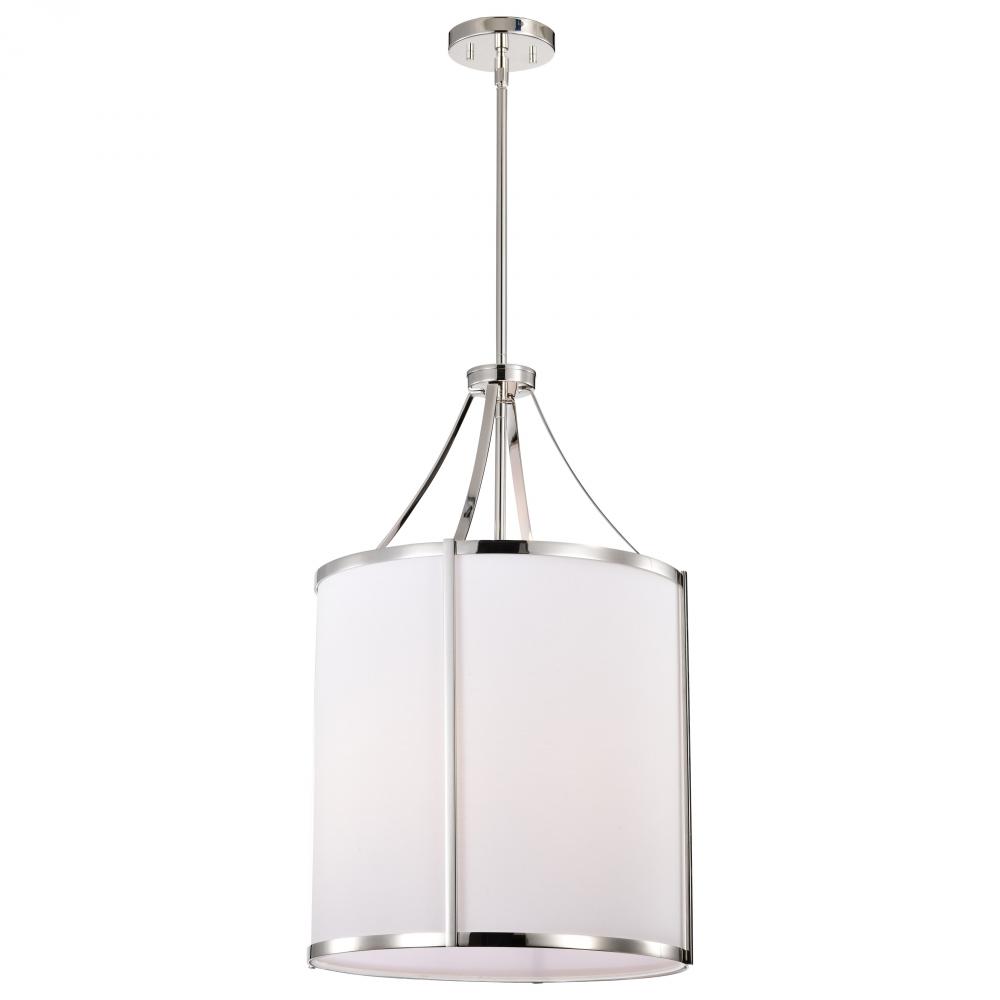 Easton 3 Light Pendant; Polished Nickel Finish; White Linen Shade by Nuvo