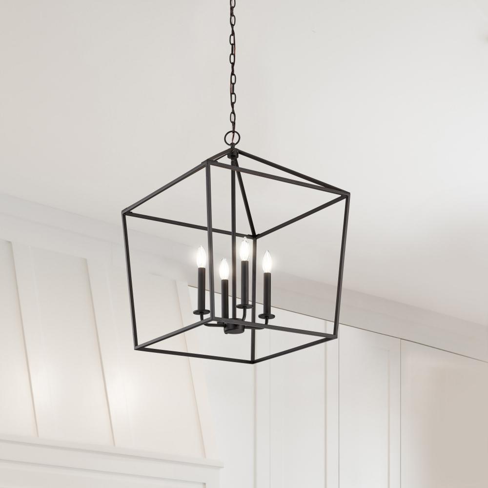 A stylish lighting fixture that combines transitional elements with minimal design, Emma 60-7941 small pendant is a knockout. The depth of the matte black finish on the simple framework is highlighted by four candelabra bulbs, exuding elegant charm without