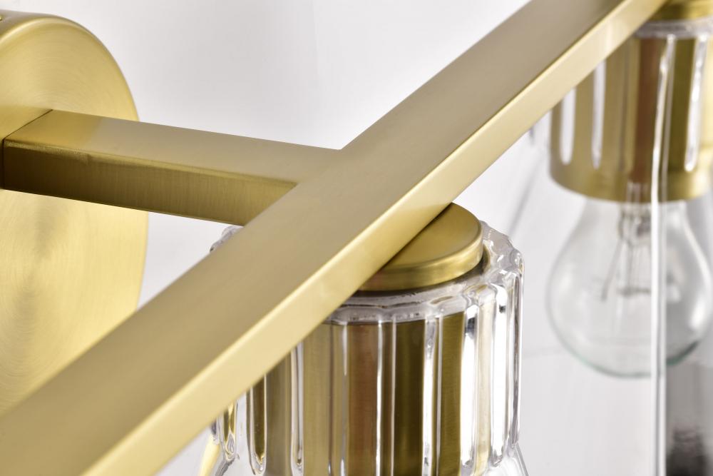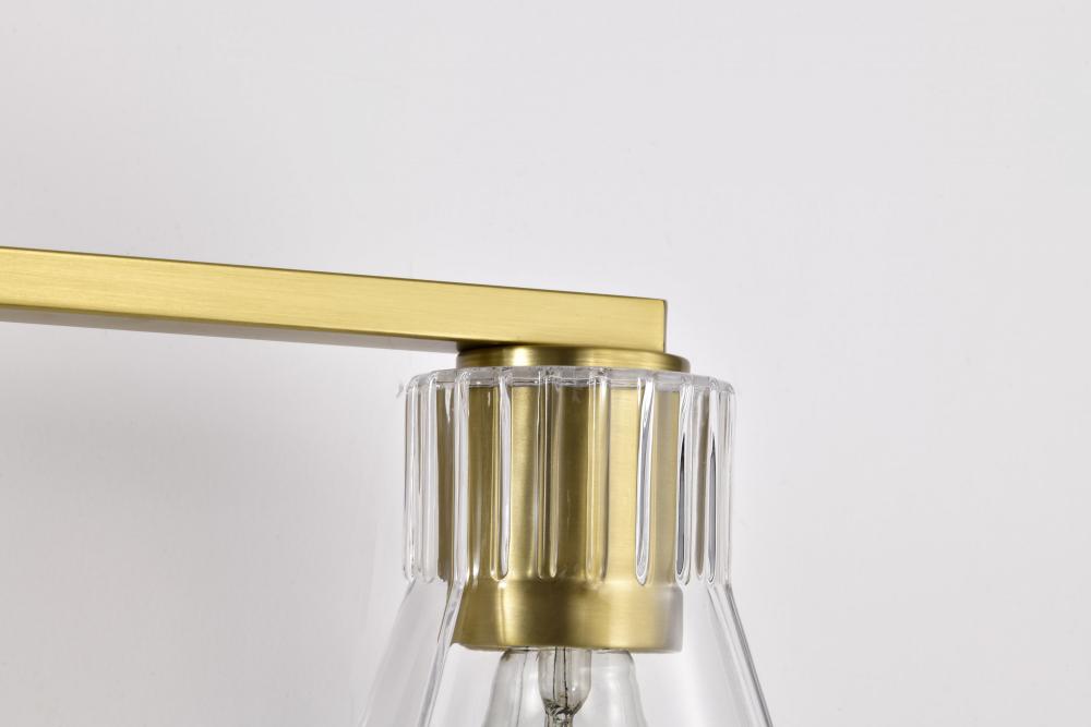 Gianna; 3 Light Vanity; Vintage Brass Finish; Clear Glass