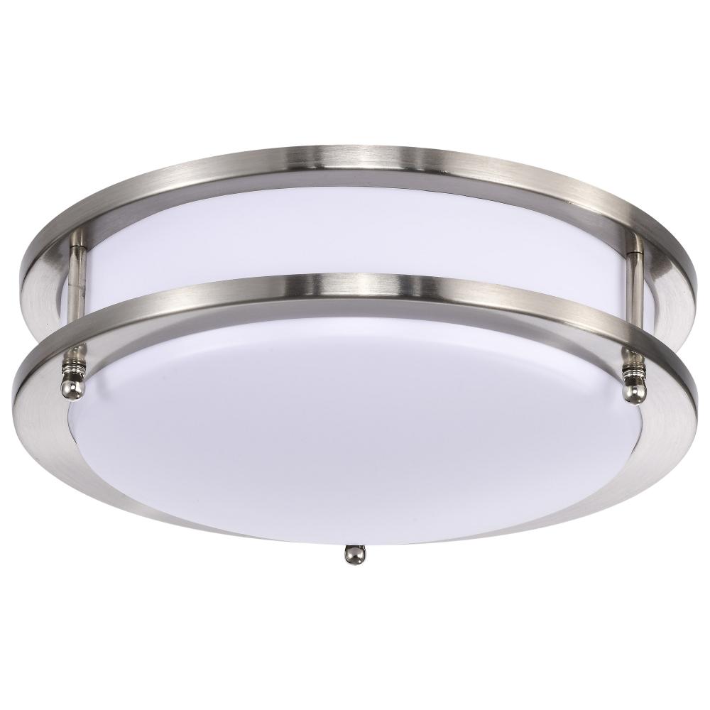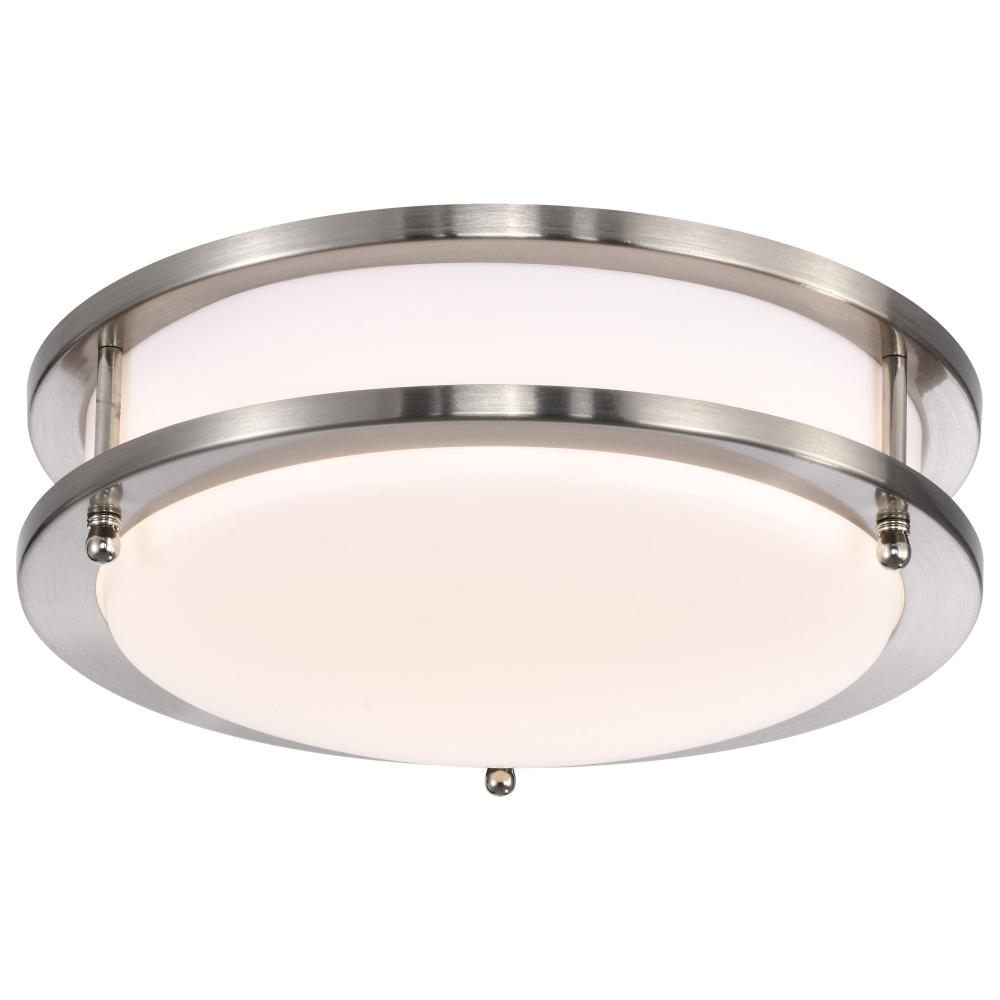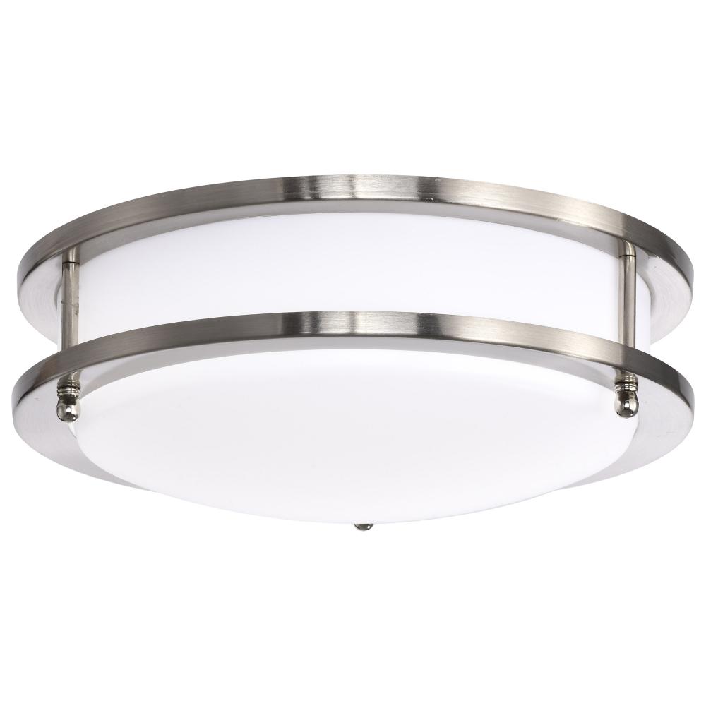The Glamour 62-1635 18-watt, 10-inch flush mount fixture is a sleek lighting solution for the home. Illuminate hallways, bathrooms, or office spaces with this dimmable flush mount fixture in a brushed nickel finish. With ColorQuick technology, the simple,