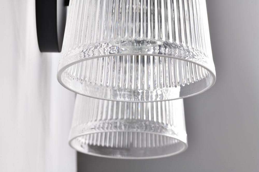 Grayson; 2 Light Vanity; Matte Black Finish; Clear Ribbed Glass by Nuvo
