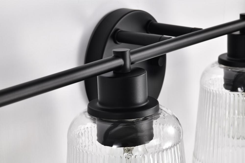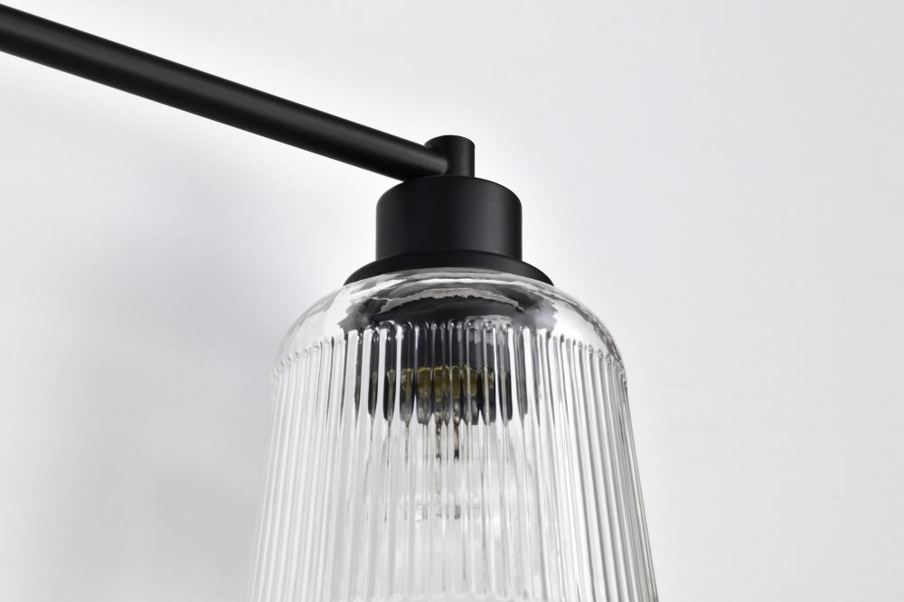 Finished in Matte Black with Clear Ribbed Glass
