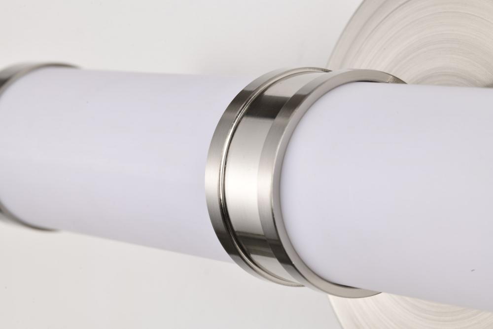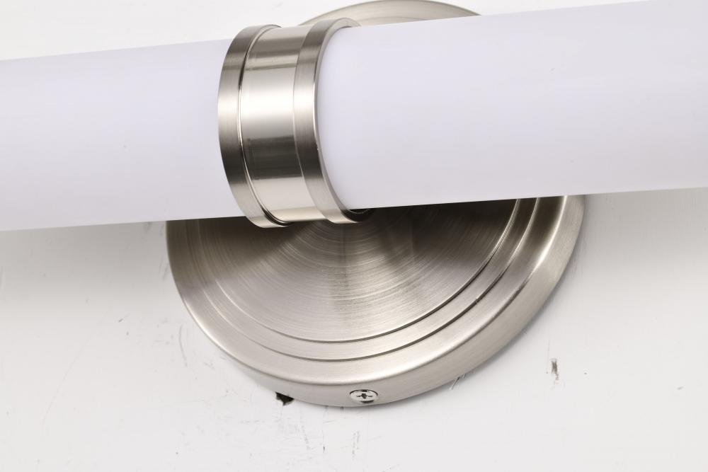 The Kagen 62-1534 integrated LED small vanity light is a stylish and modern lighting fixture. The brushed nickel finish provides a sleek and contemporary look, and the white acrylic lens creates a soft and diffused light that is perfect for a bathroom sett