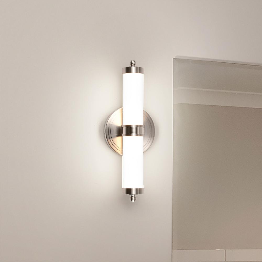 Kagen Small Vanity; LED; Brushed Nickel Finish; White Acrylic Lens