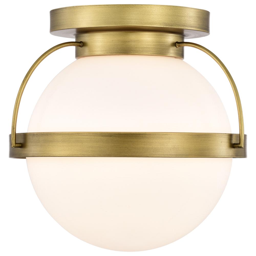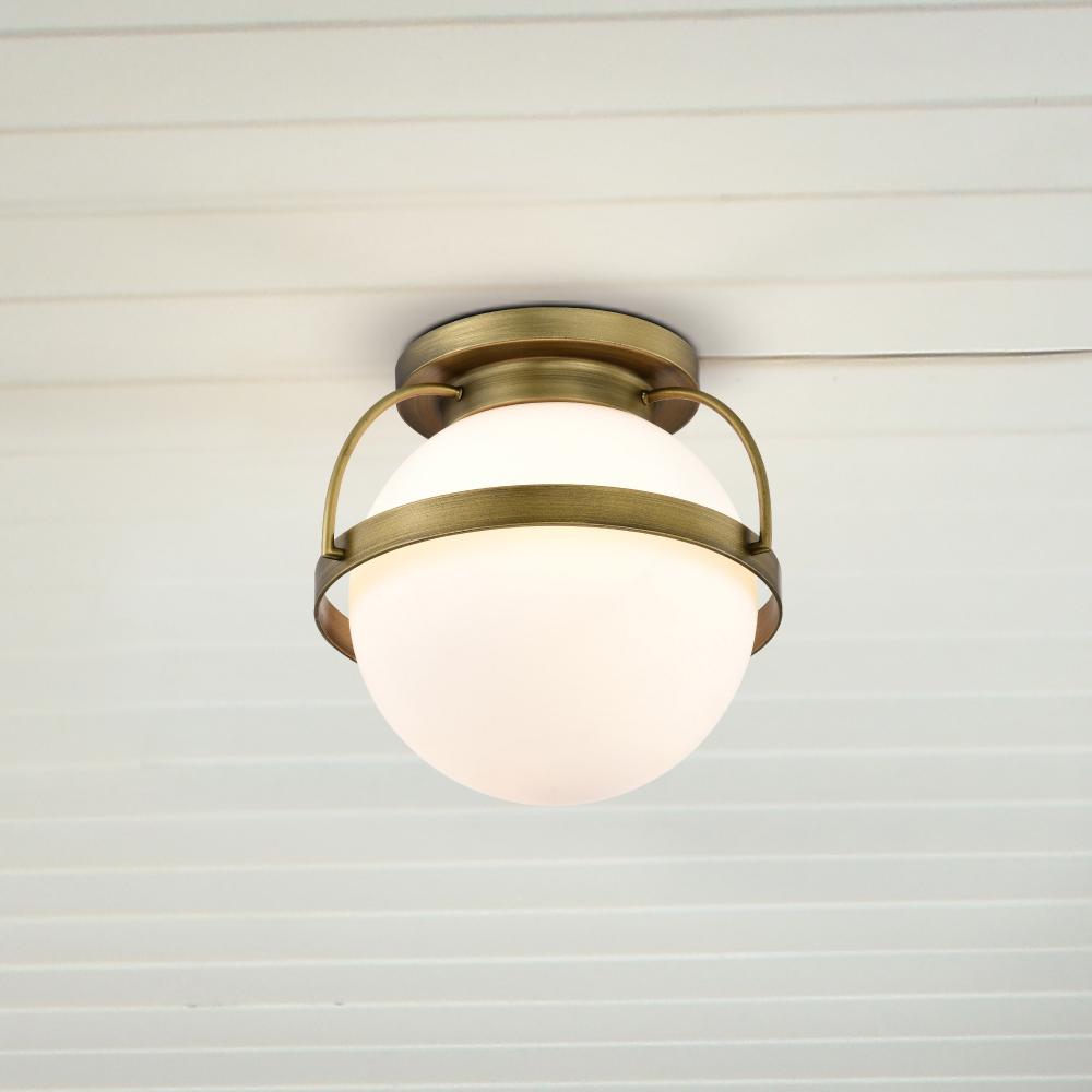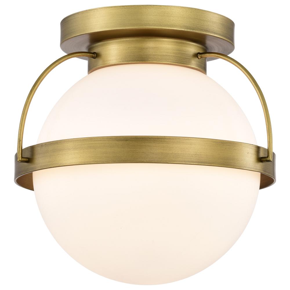 Lakeshore 1 Light Small Flush; Natural Brass Finish; White Opal Glass