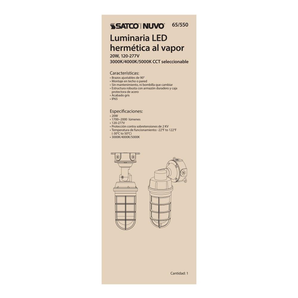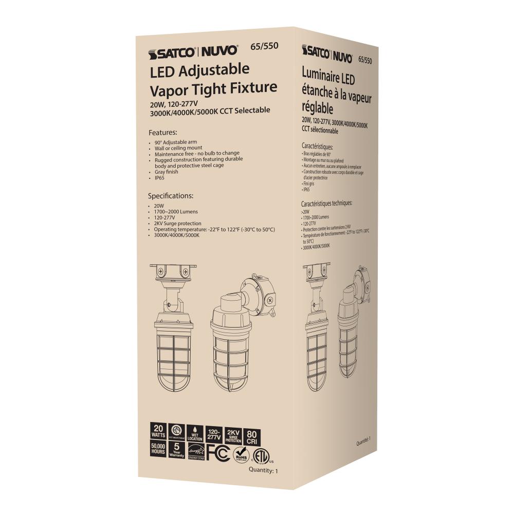 65-550, Satco's new LED adjustable vapor tight fixture, offers high quality lighting that will work in any number of situations. With the classic vapor tight design upgraded with CCT selectable LED technology, this rugged 20 watt, IP65 rated, durable d