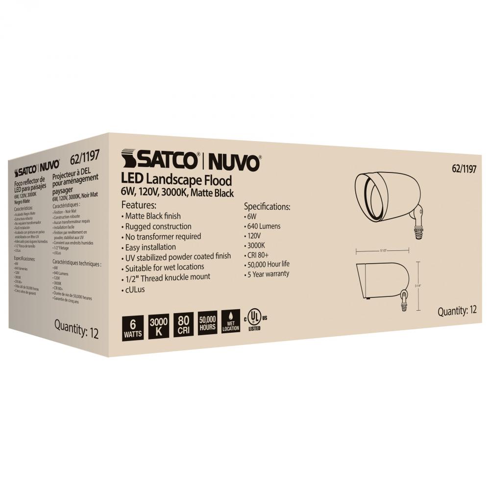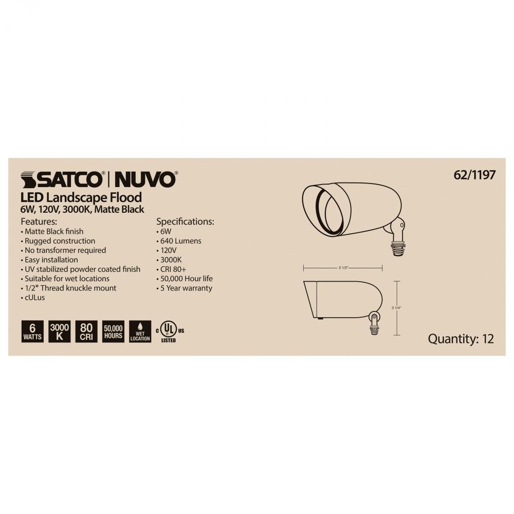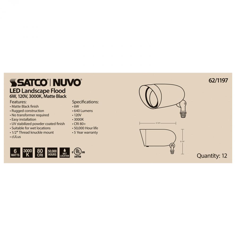 LED Landscape Flood; 6 Watt; Matte Black Finish; 3000K; 120 Volt by Nuvo