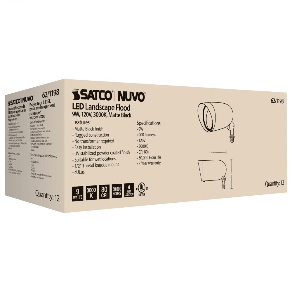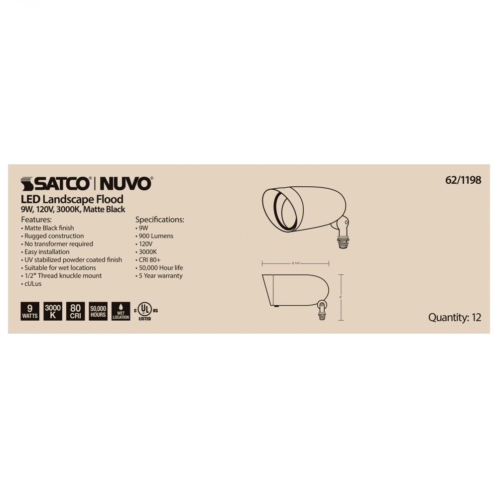 LED Landscape Flood; 9 Watt; Matte Black Finish; 3000K; 120 Volt by Nuvo