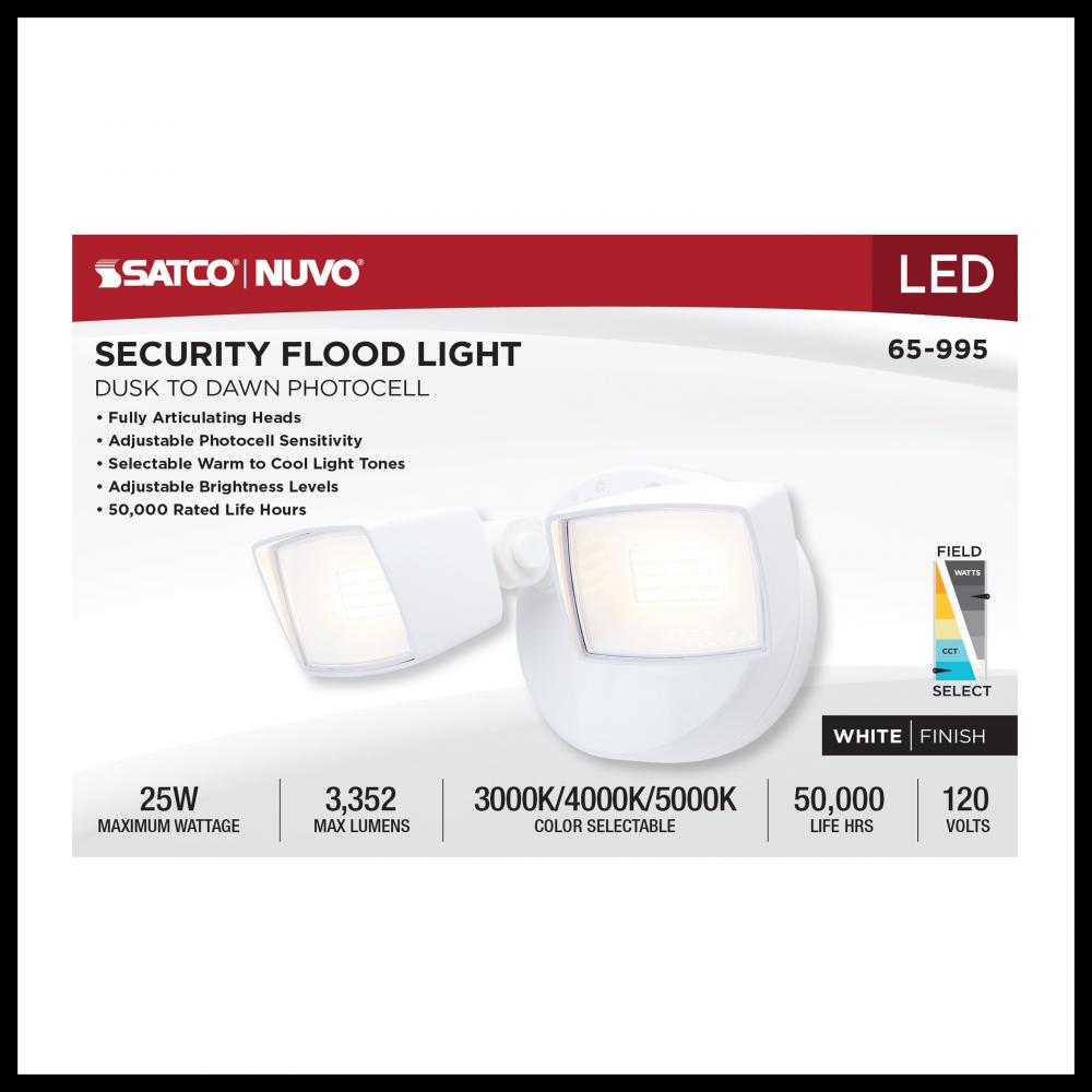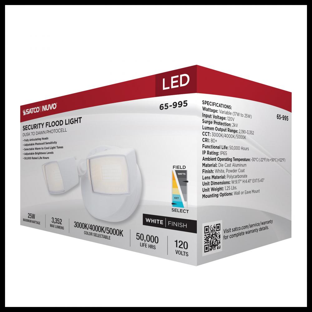 LED Security Light; Dual Head; Field Selectable; White Finish
