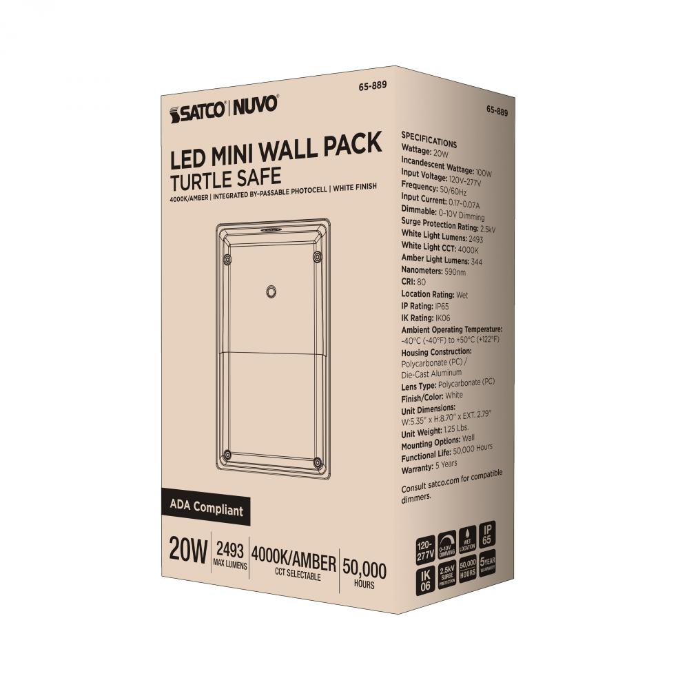 Introducing SATCO NUVO's 65-889 turtle-friendly, small-footprint wall pack in a white finish. Designed for coastal areas near turtle breeding grounds, this fixture features a die-cast aluminum frame and an IK06-rated polycarbonate cover for durability.