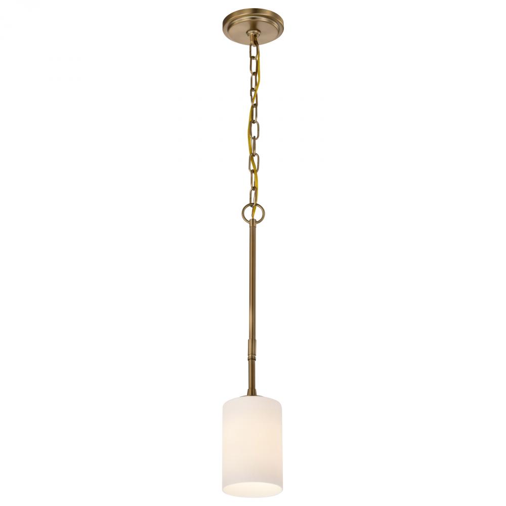 Liam; 1 Light Mini Pendant; Burnished Brass; White Opal Glass