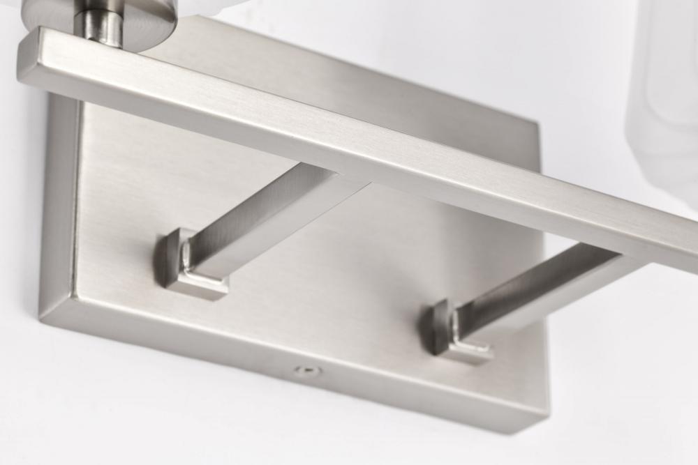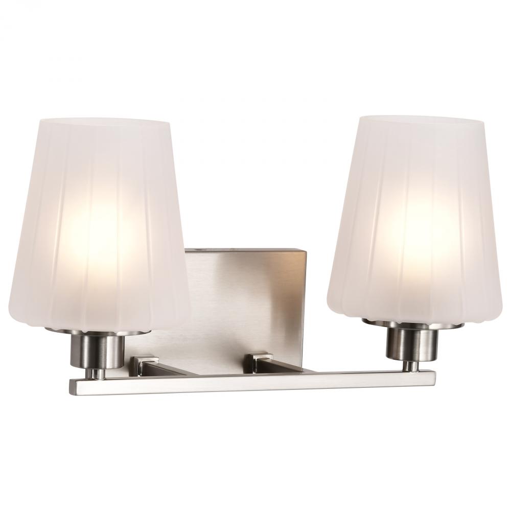 Lune; 2 Light Vanity; Brushed Nickel Finish; Etched White Glass