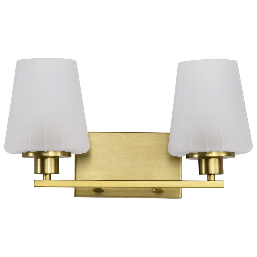 Lune; 2 Light Vanity; Vintage Brass Finish; Etched White Glass by Nuvo