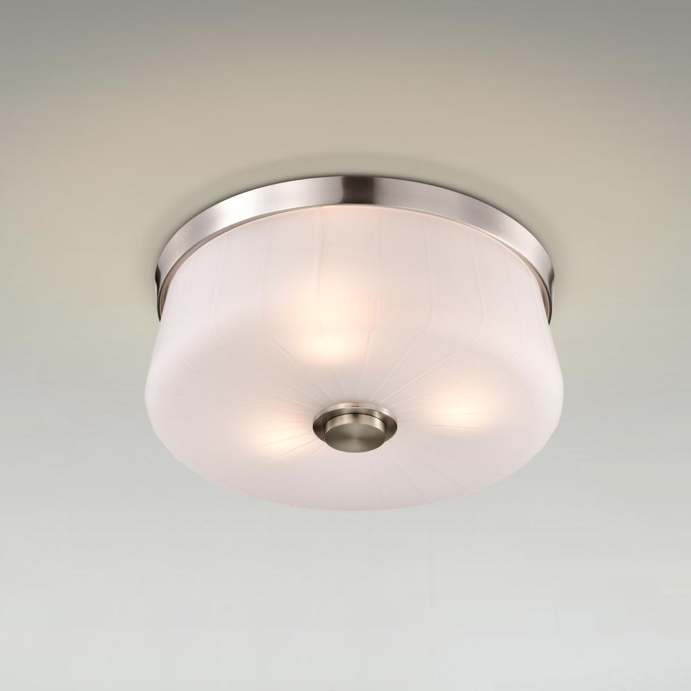 Lune; 3 Light Flush Mount; Brushed Nickel Finish; Etched White Glass by Nuvo