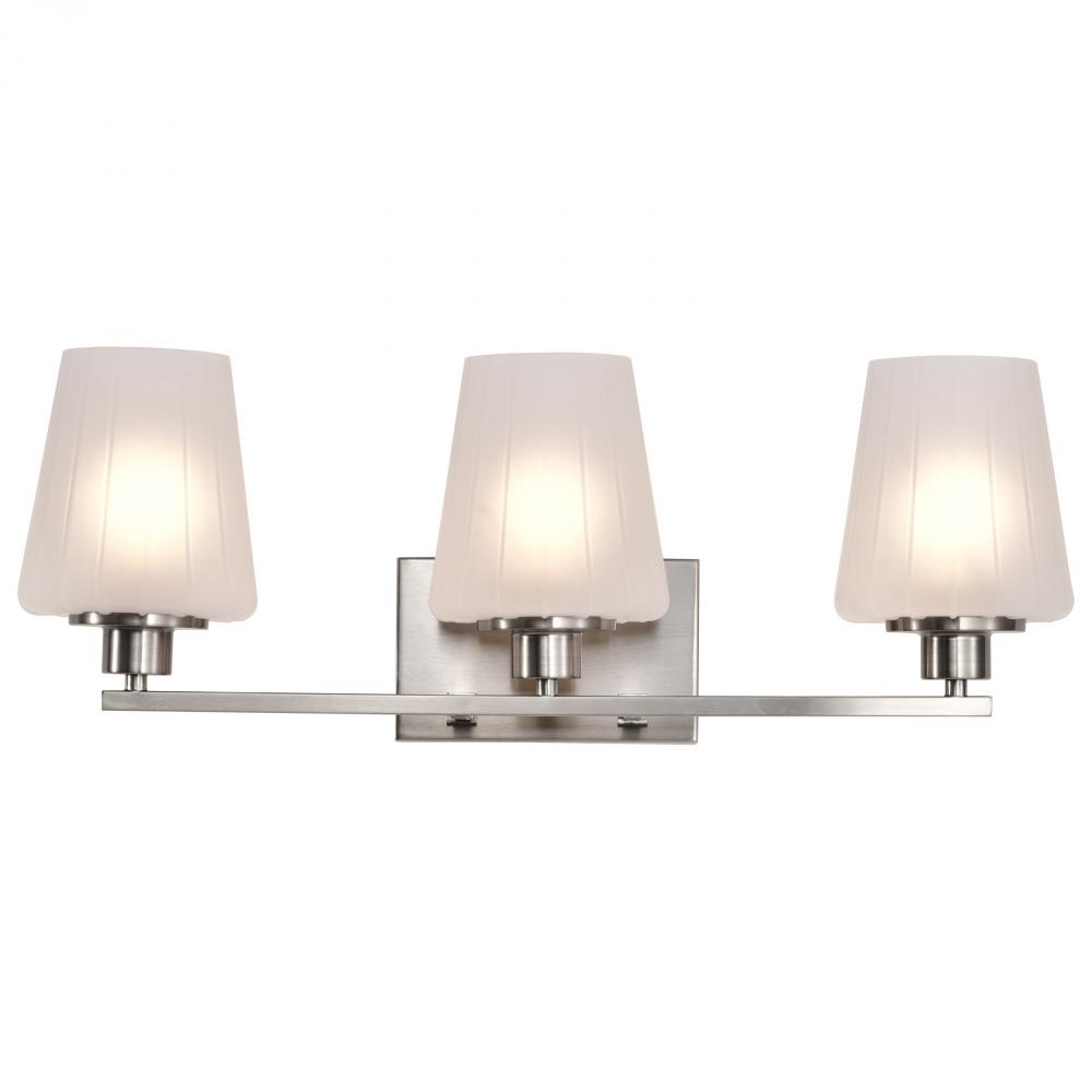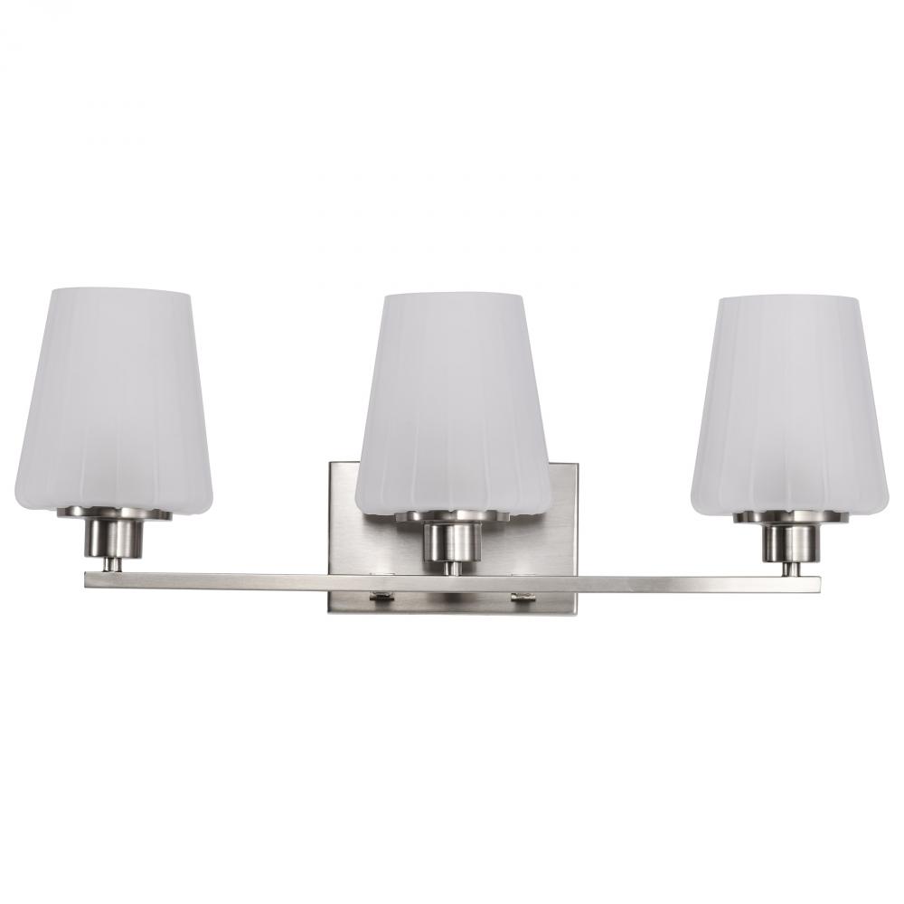 Lune; 3 Light Vanity; Brushed Nickel Finish; Etched White Glass by Nuvo