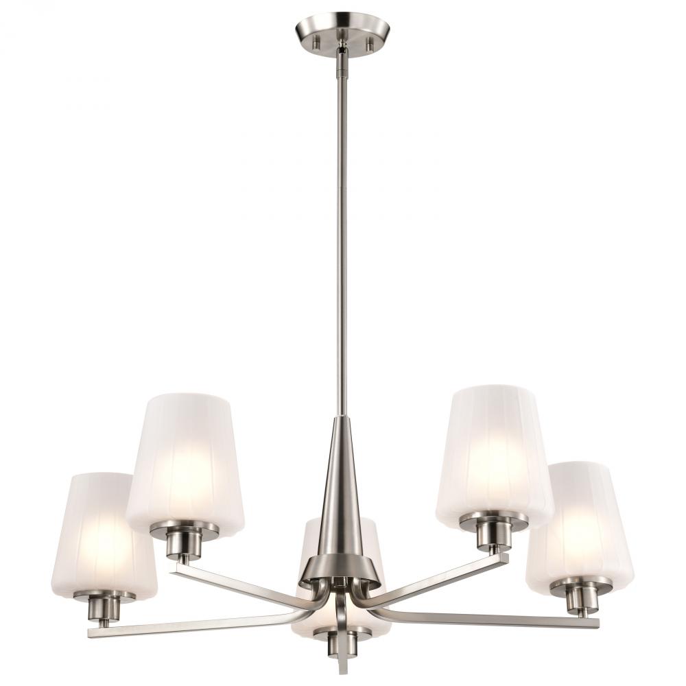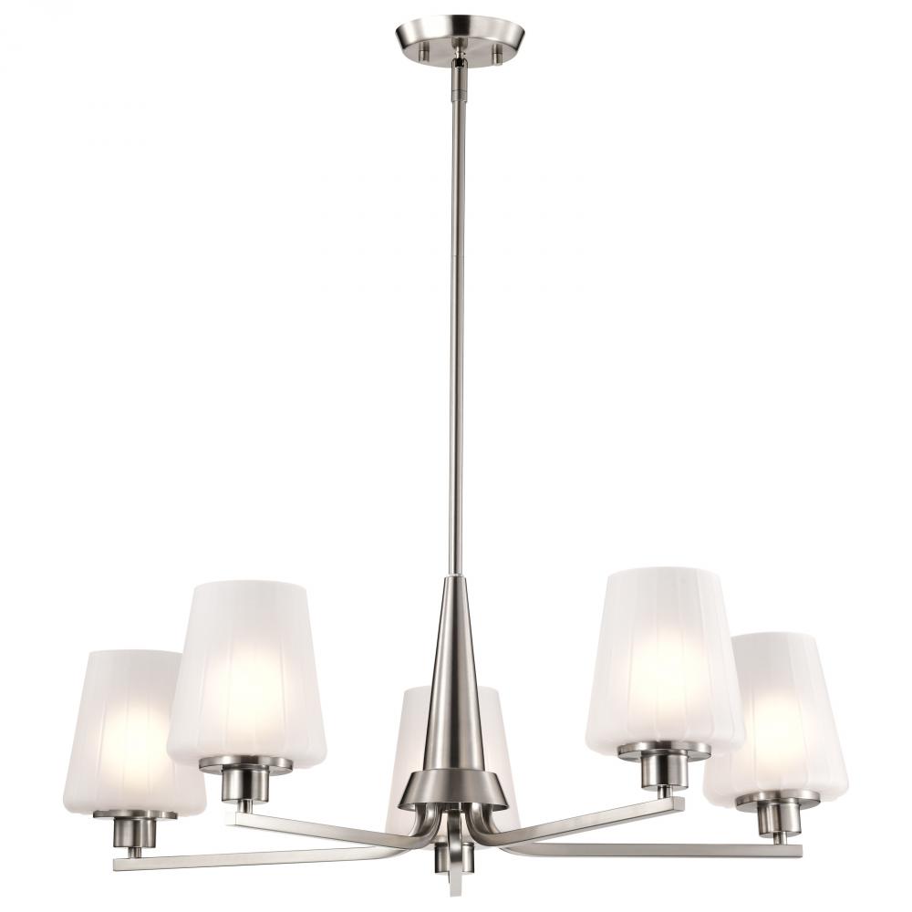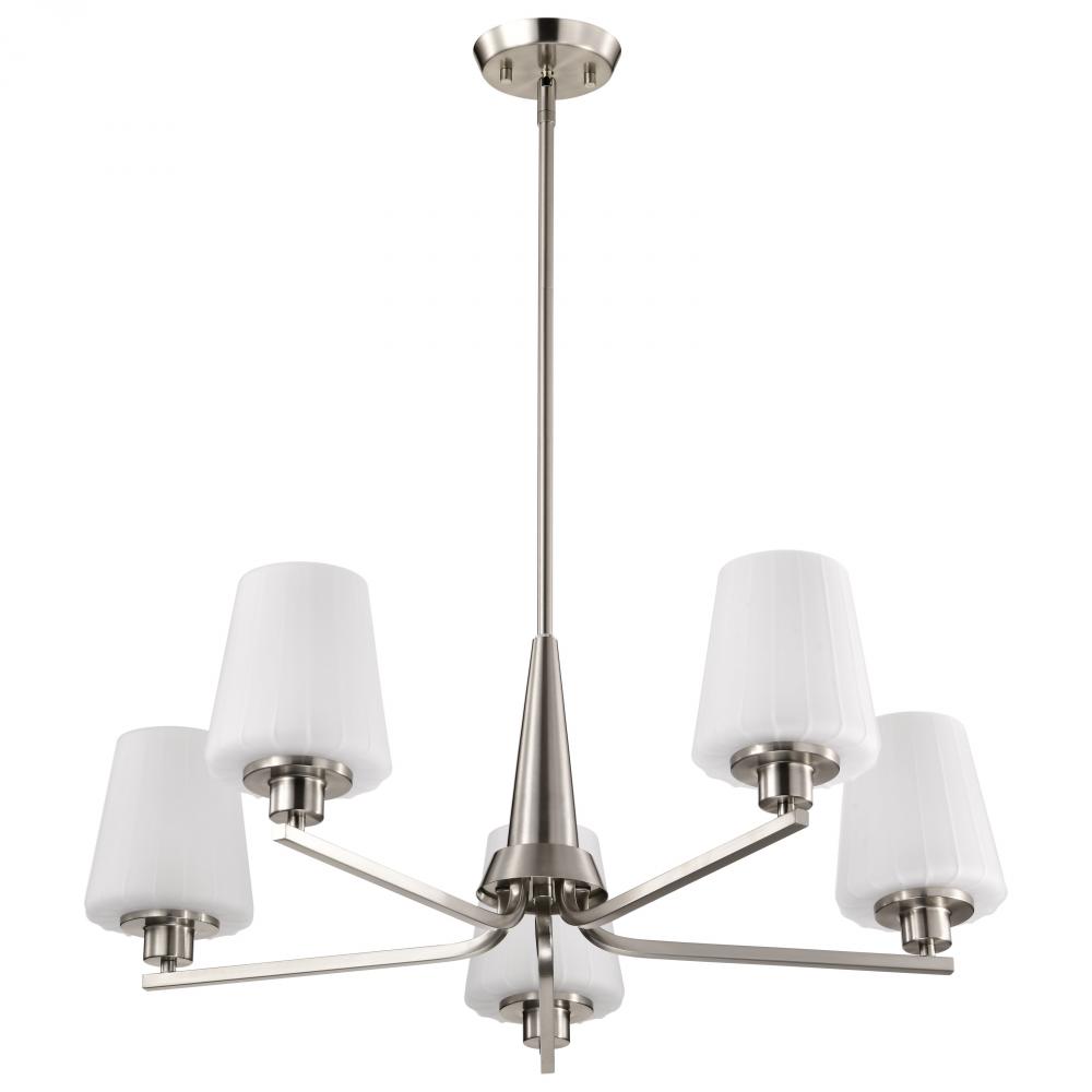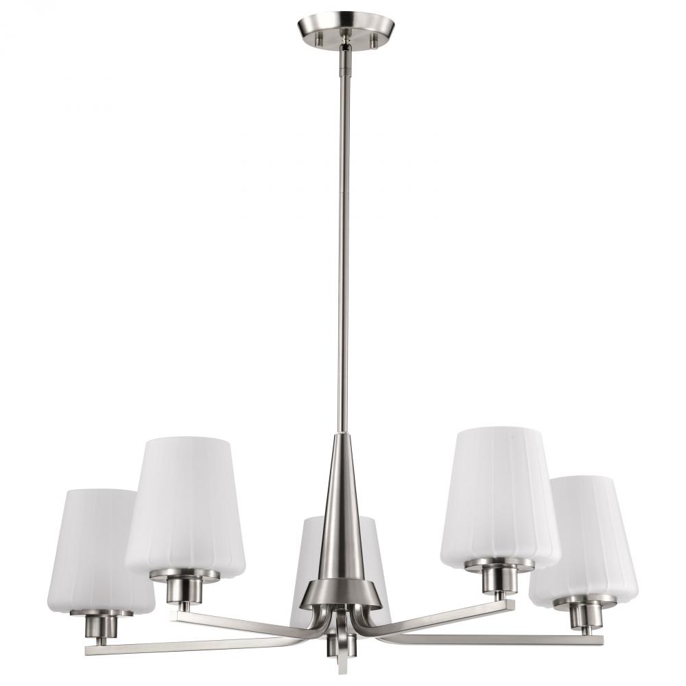 Lune; 5 Light Chandelier; Brushed Nickel Finish; Etched White Glass by Nuvo