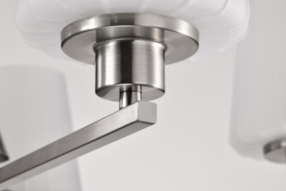 Lune; 5 Light Chandelier; Brushed Nickel Finish; Etched White Glass