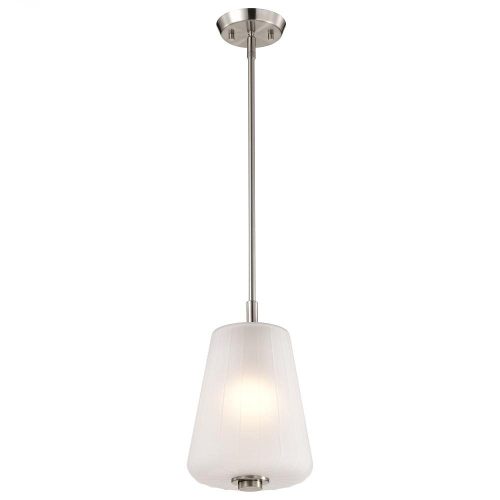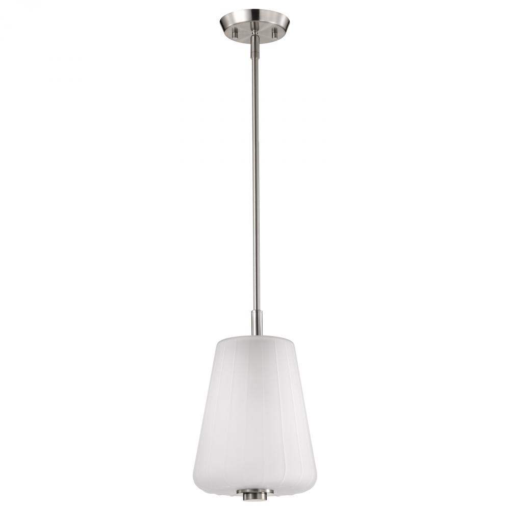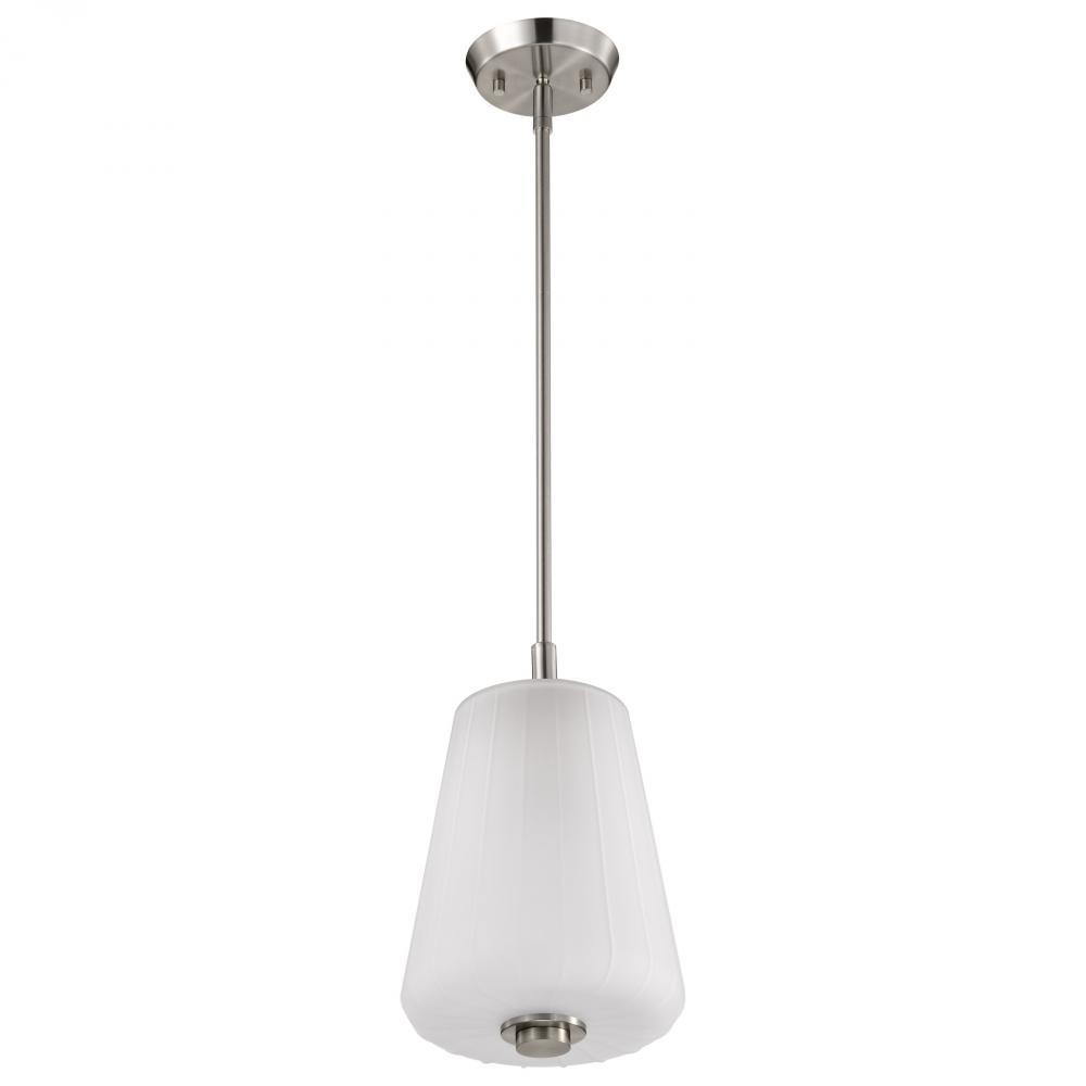 Lune; Mini Pendant; Brushed Nickel Finish; Etched White Glass by Nuvo