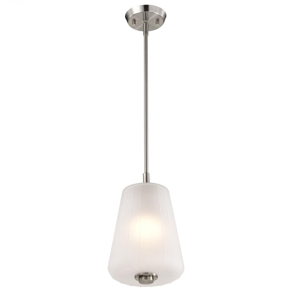 Lune; Mini Pendant; Brushed Nickel Finish; Etched White Glass