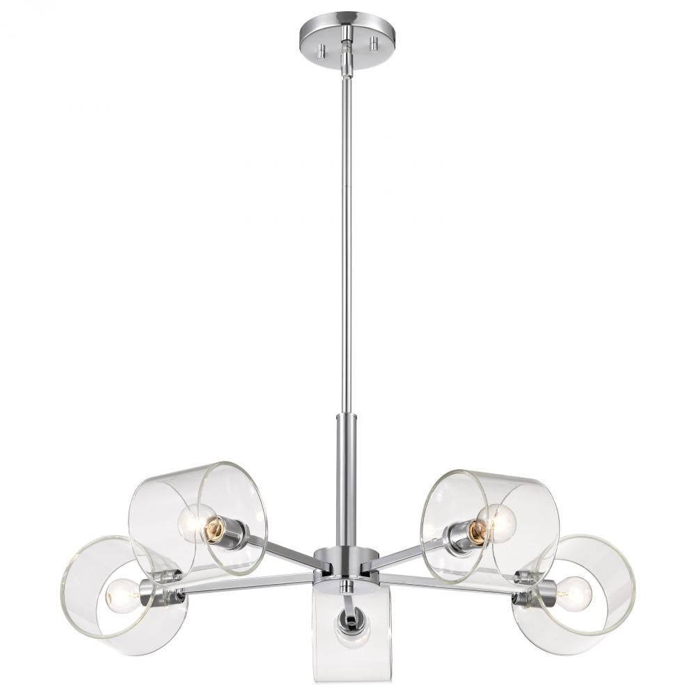 Marlowe; 28 Inch 5 Light Chandelier; Polished Nickel with Clear Glass by Nuvo