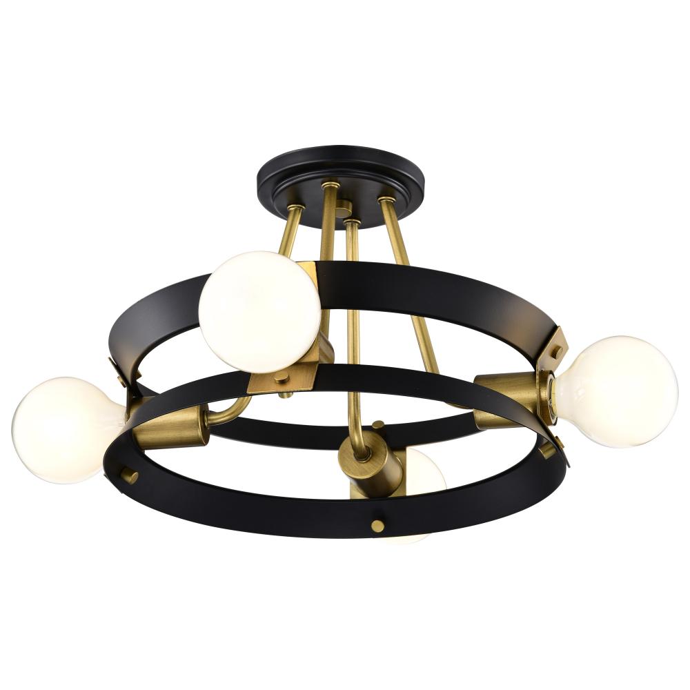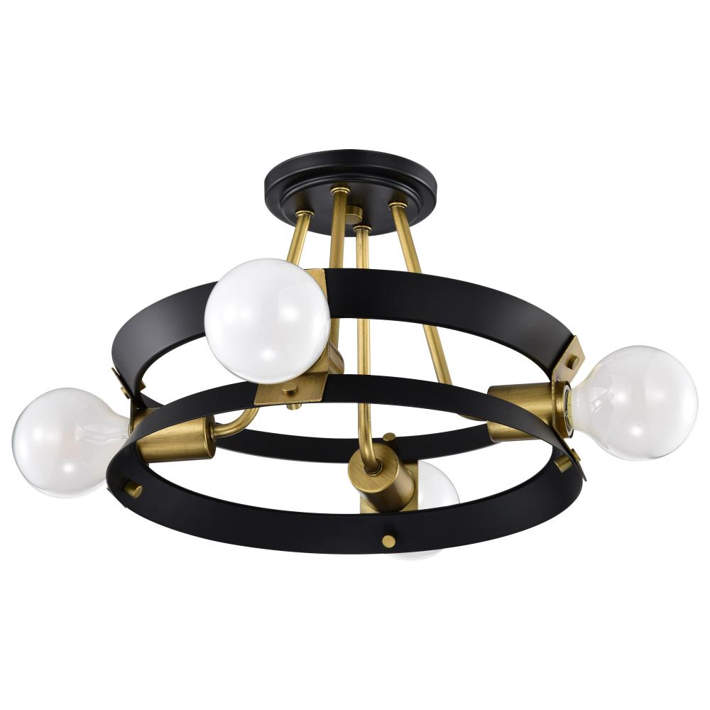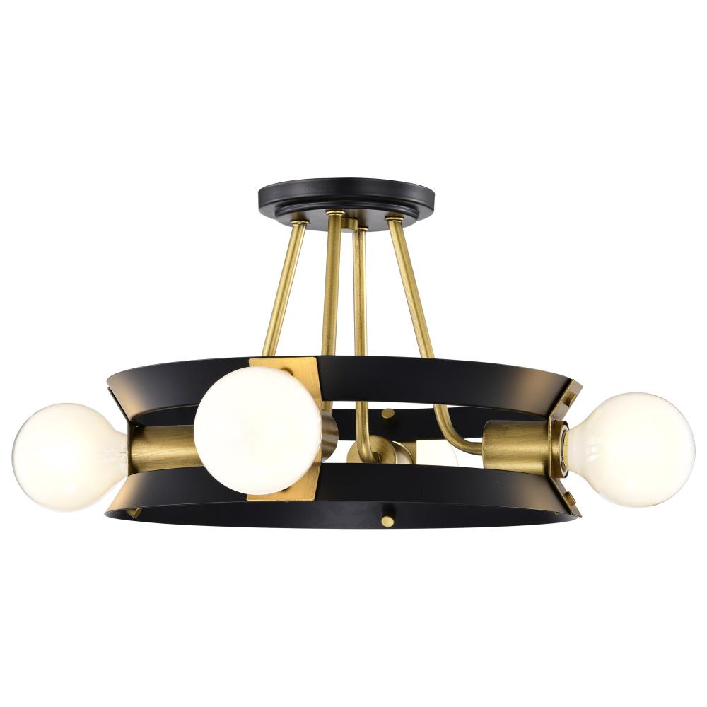 Marsden 4 Light Semi Flush; Matte Black and Natural Brass Finish