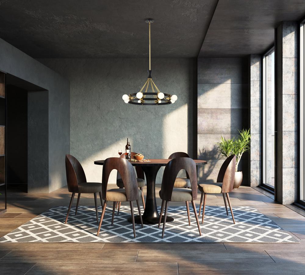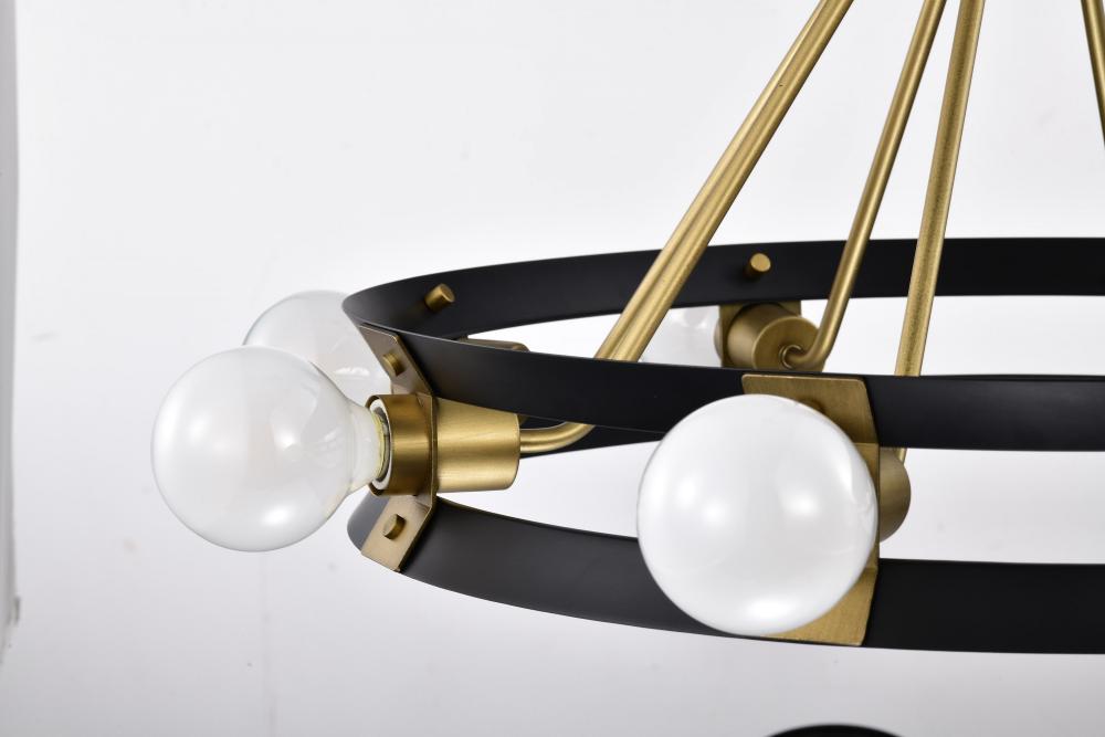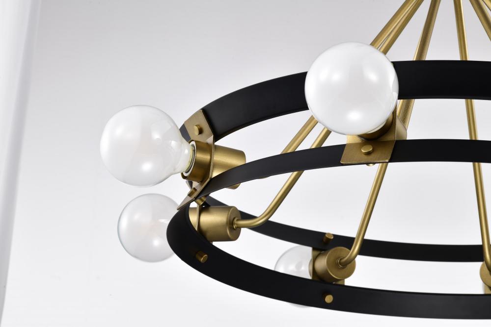 Eclectic, contemporary, unique, just a few words to describe the Marsden 60-7868 large eight light chandelier. The matte black finish is the perfect backdrop to the natural brass accents, blending form and function beautifully. A stunning chandelier over a