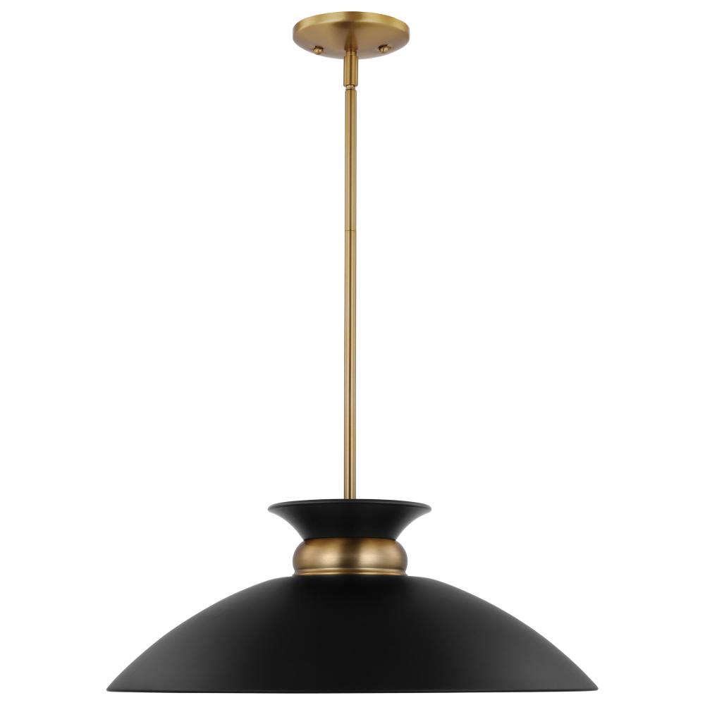 Perkins; 1 Light; Medium Pendant; Matte Black with Burnished Brass