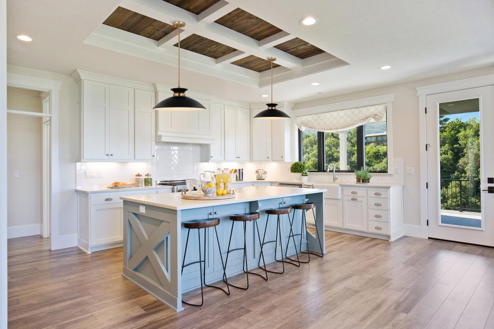 The simplistic design of the Perkins 60-7461 medium pendant is understated, yet refined. The decorative burnished brass band on the shallow-dome metal shade cinches at the top, creating the illusion of a swirling skirt. The white interior of the shade prov