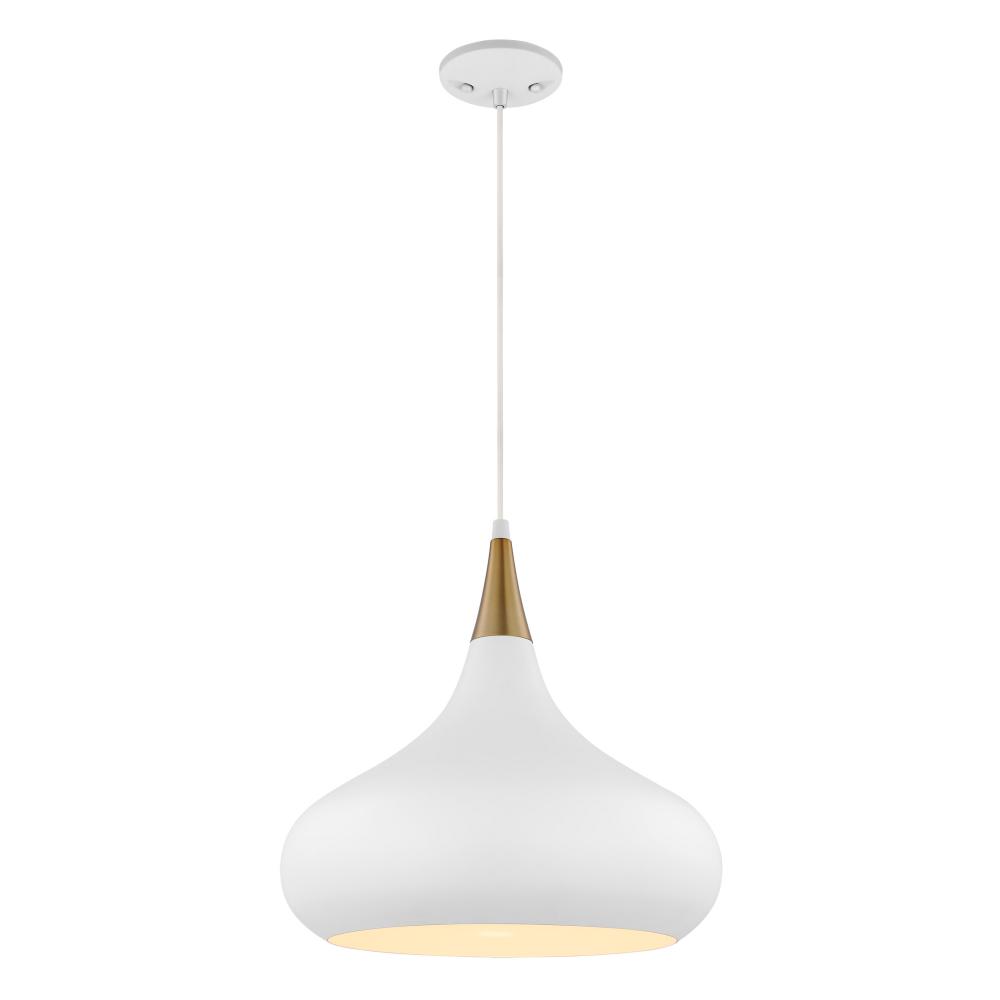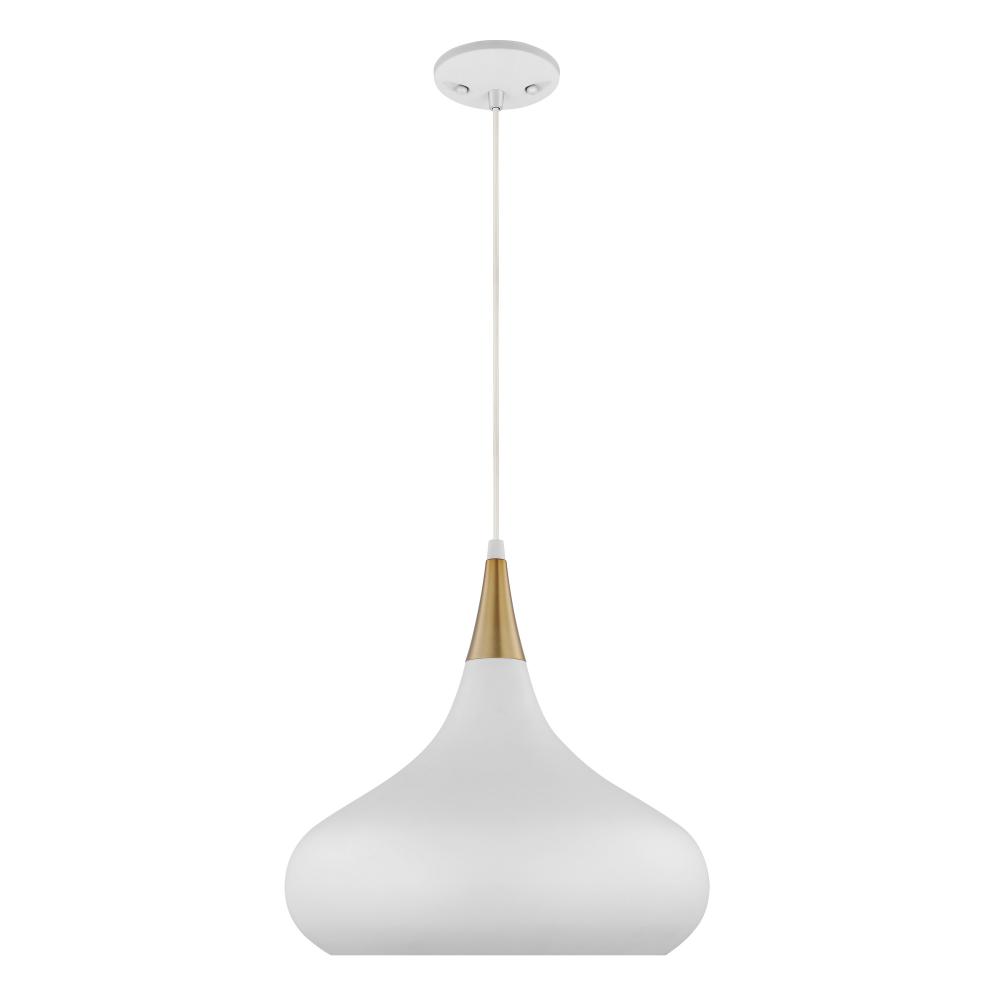 Phoenix; 1 Light; Medium Pendant; Matte White with Burnished Brass