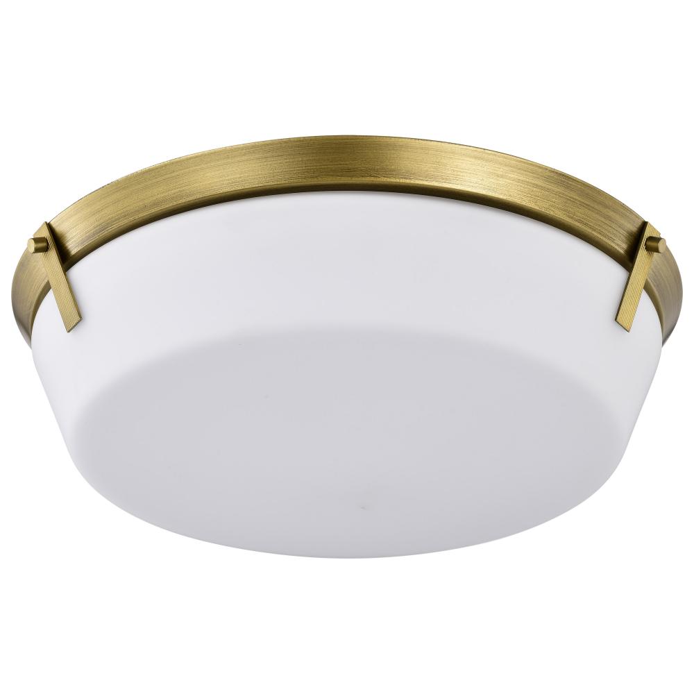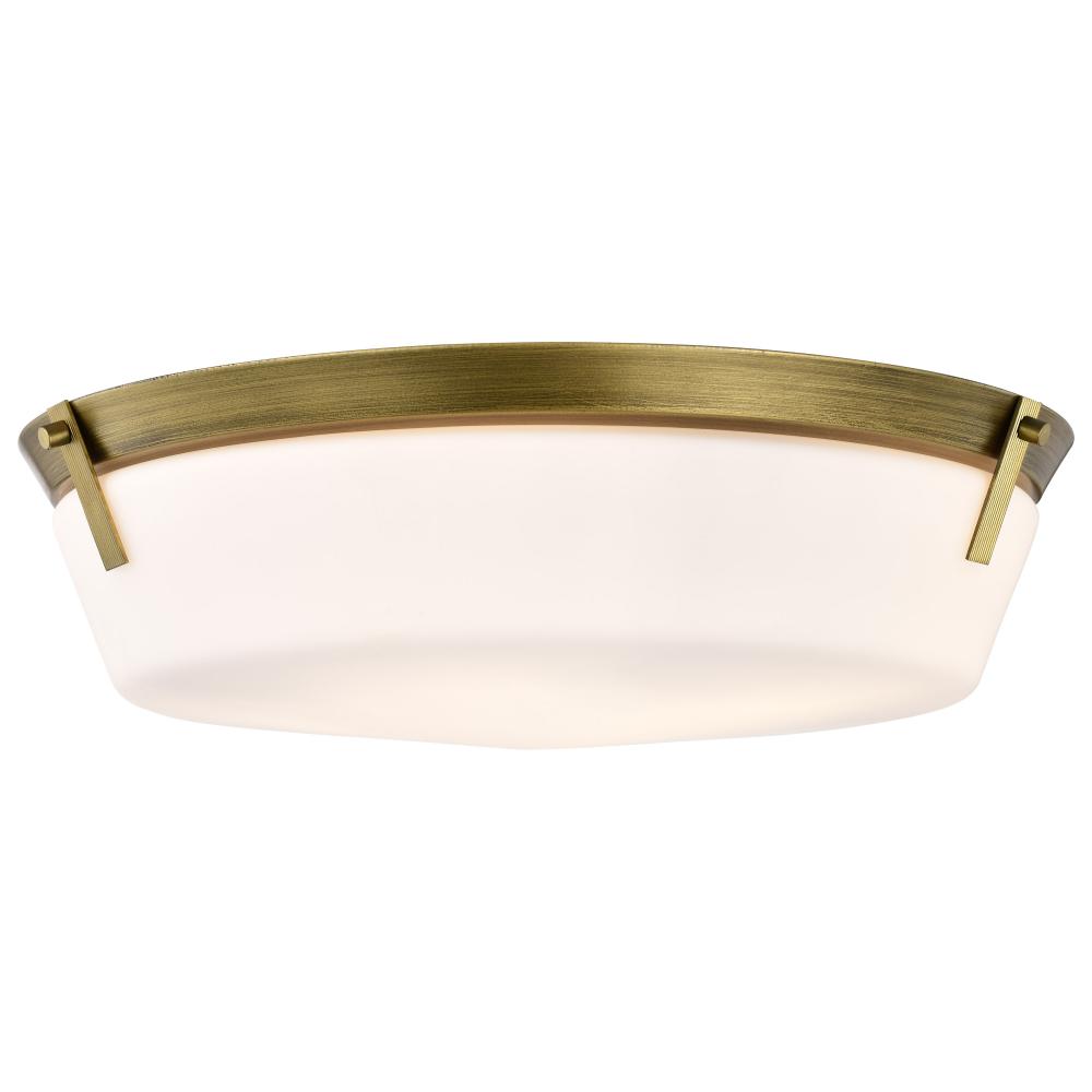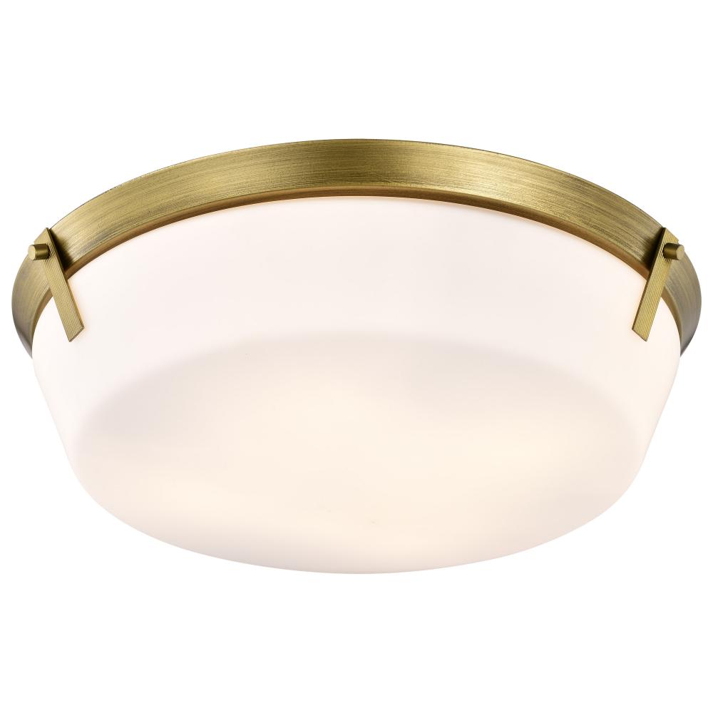 Rowen 4 Light Flush Mount; Natural Brass Finish; Etched White Glass
