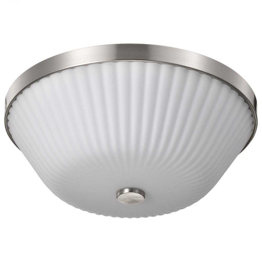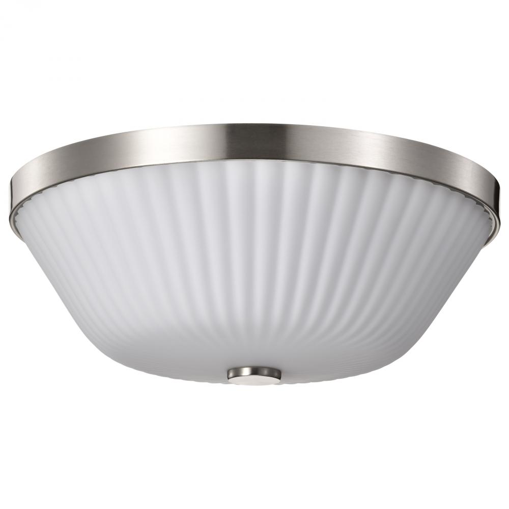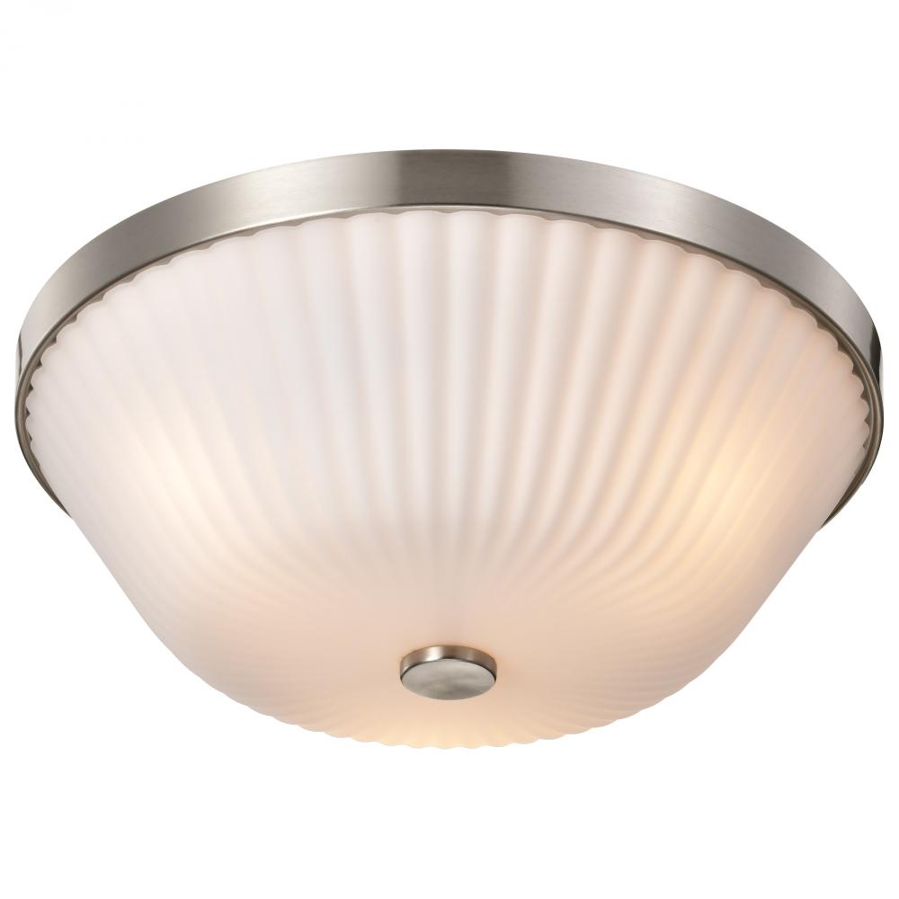 Royale; 3 Light Flush Mount; Brushed Nickel Finish; Ribbed White Glass by Nuvo