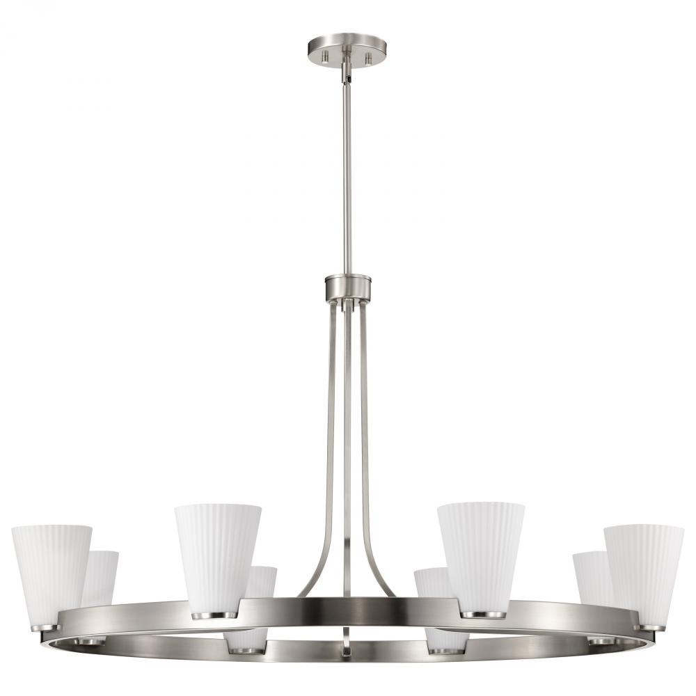 Royale; 8 Light Chandelier; Brushed Nickel Finish; Ribbed White Glass by Nuvo
