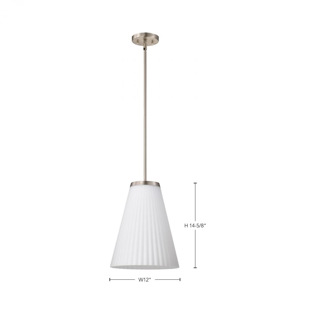 Royale; Large Pendant; Brushed Nickel Finish; Ribbed White Glass