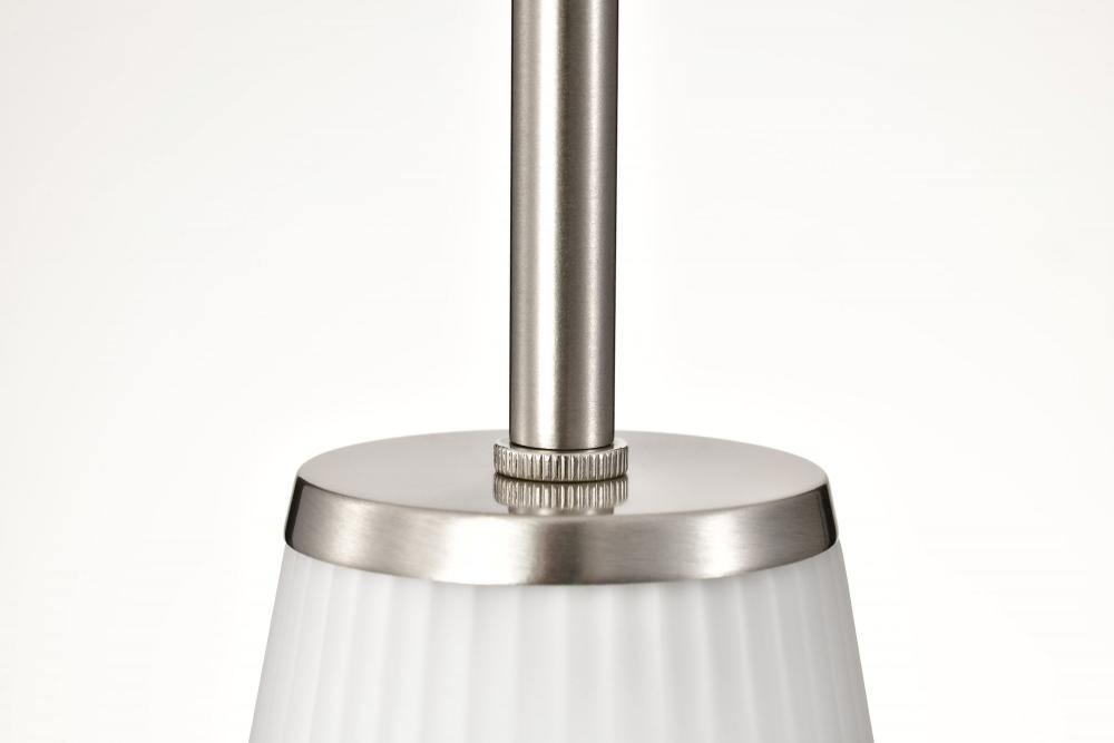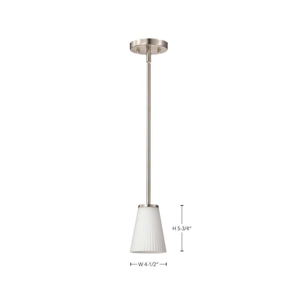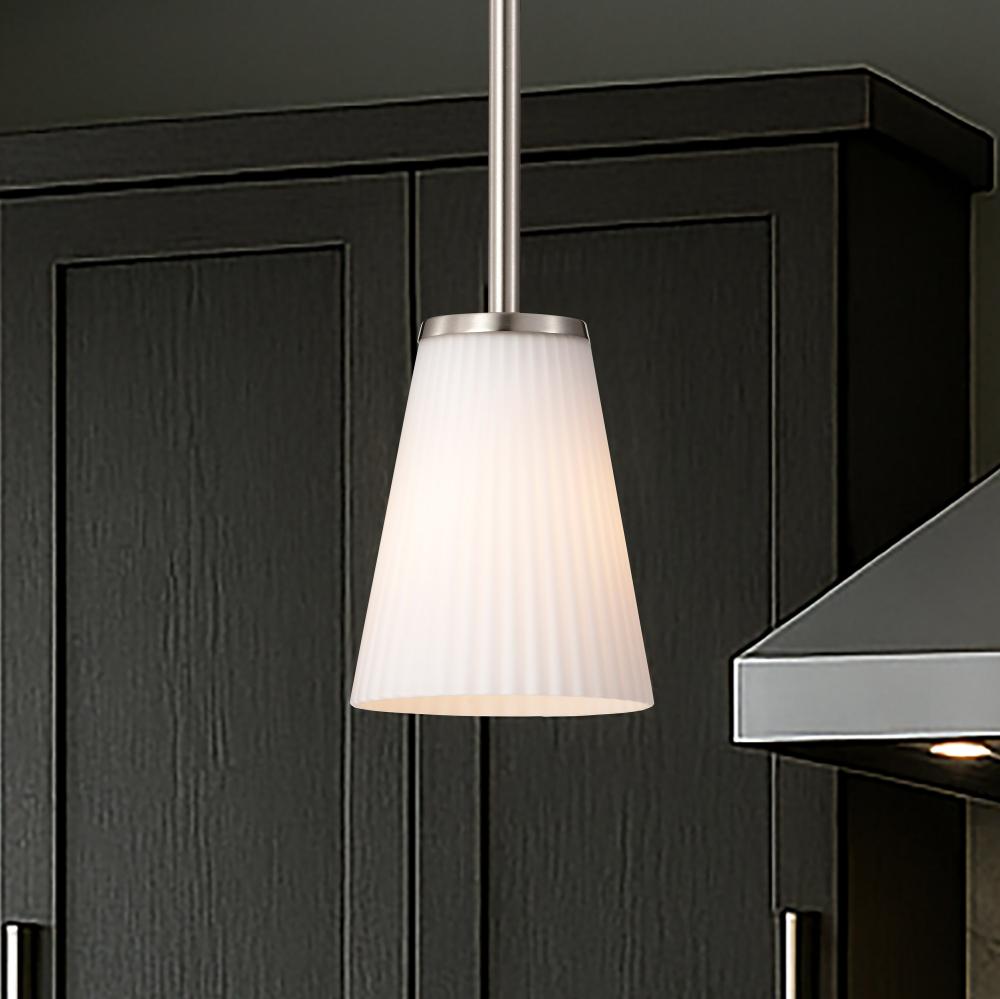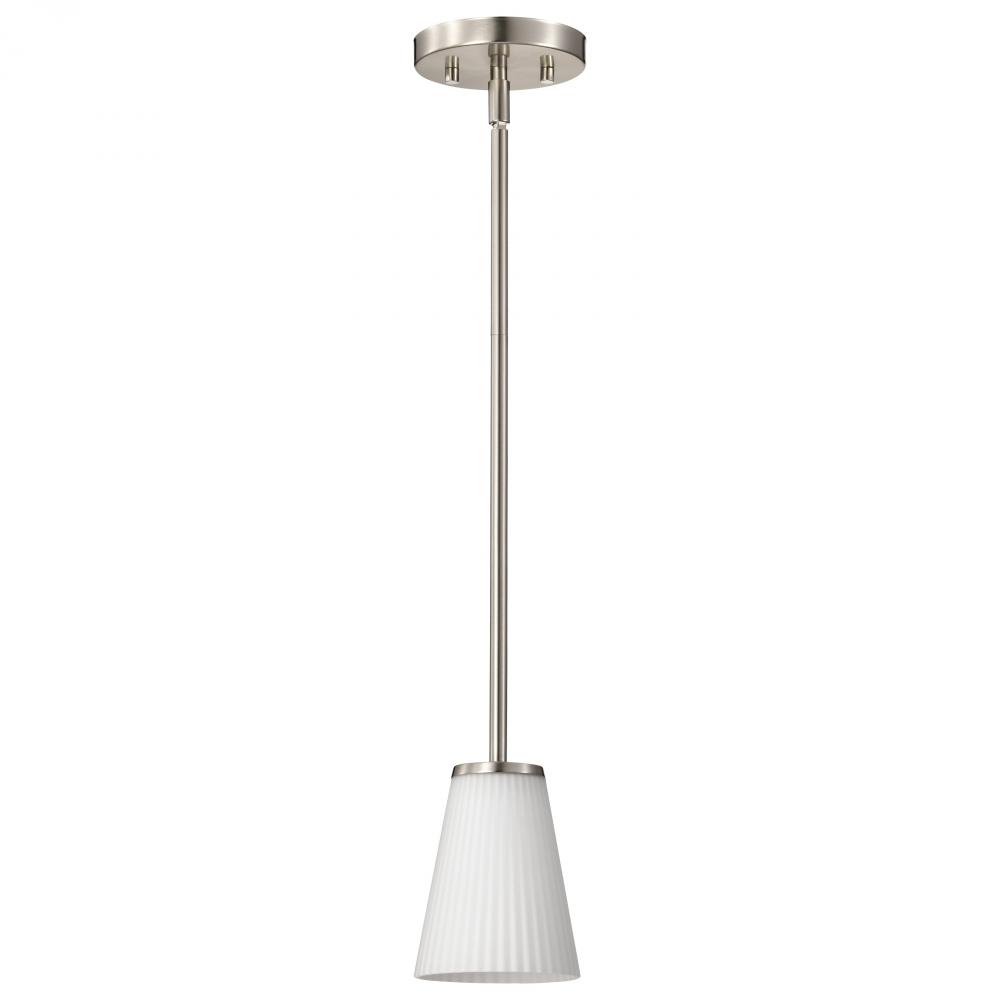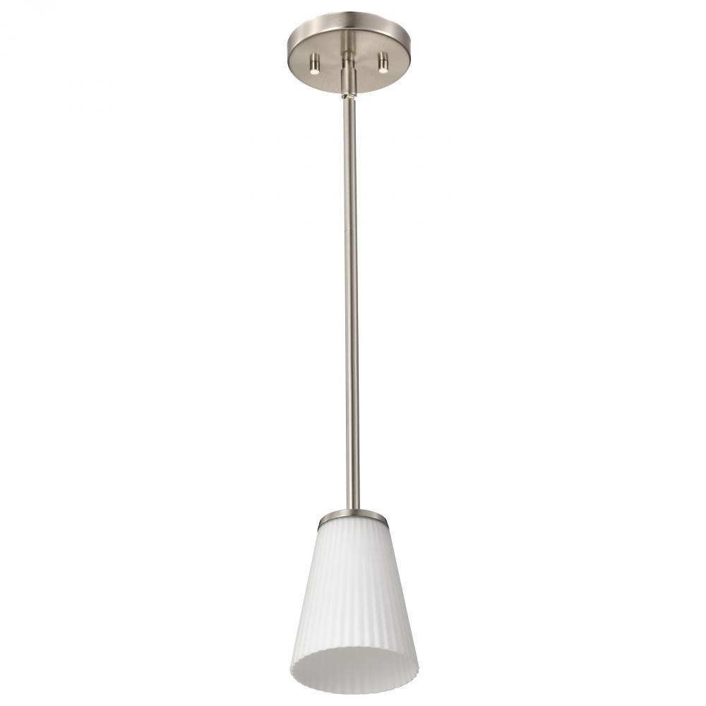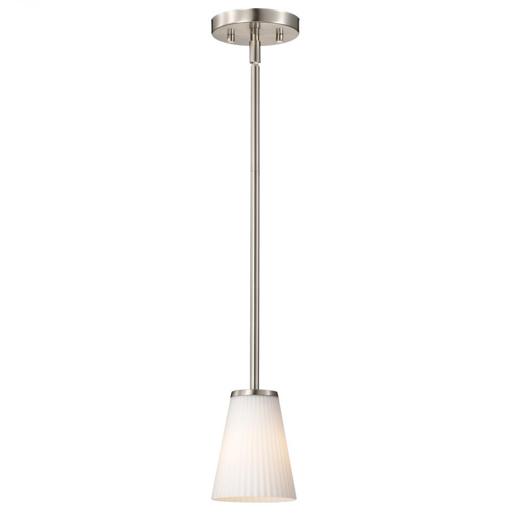 Royale; Mini Pendant; Brushed Nickel Finish; Ribbed White Glass